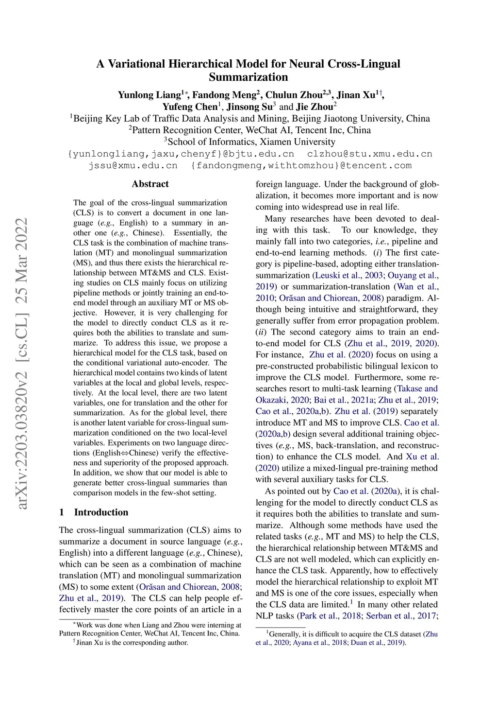 A Variational Hierarchical Model for Neural Cross-Lingual Summarization