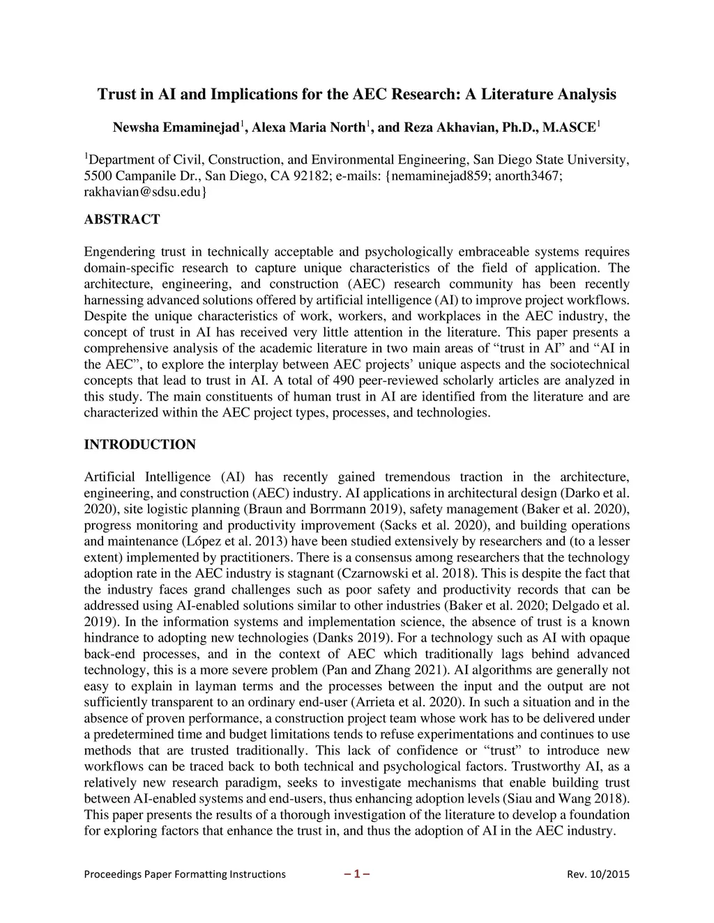 Trust in AI and Implications for the AEC Research: A Literature Analysis