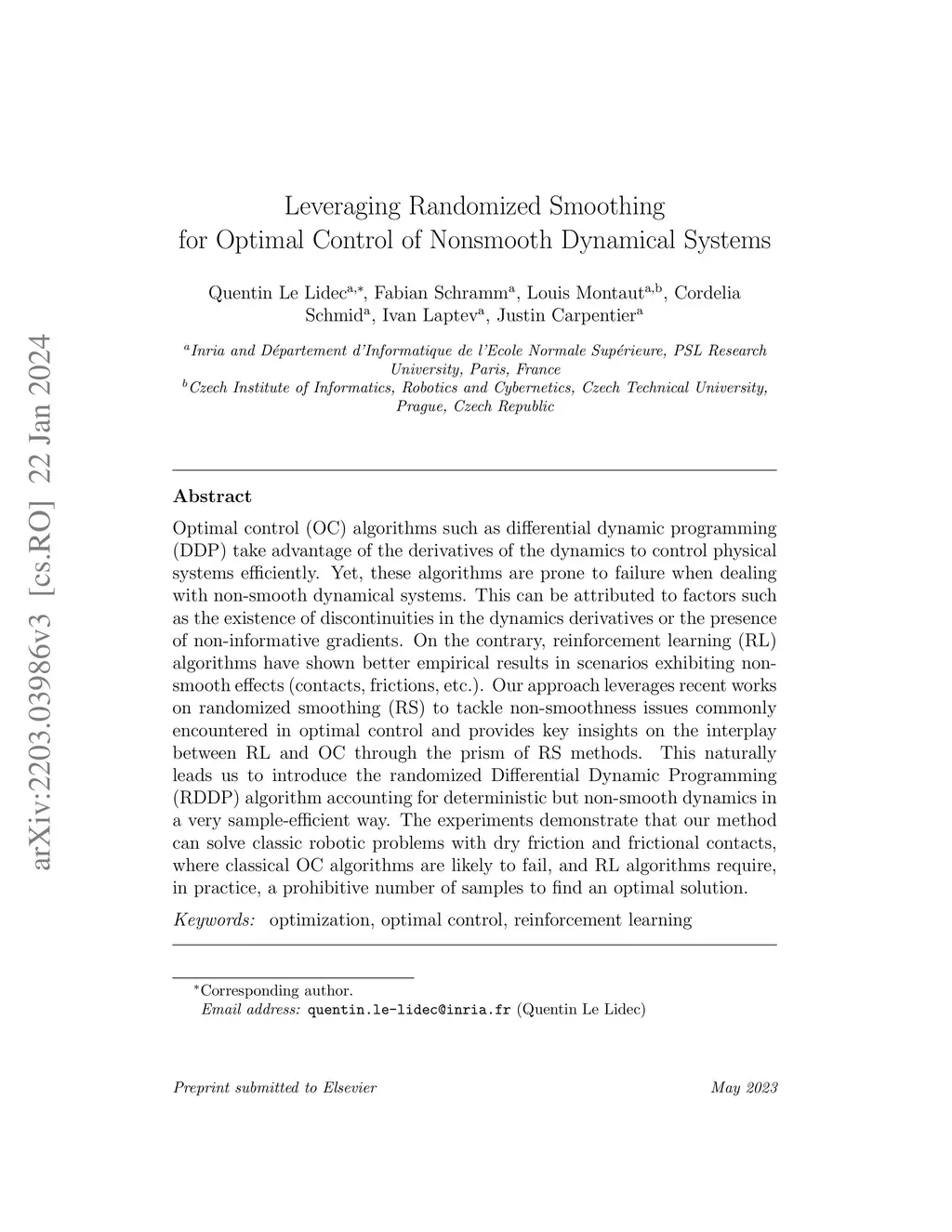 Optimal control (OC) algorithms such as Differential Dynamic Programming (DDP) take advantage of the derivatives of the dynamics to efficiently control physical systems. Yet, in the presence of nonsmooth dynamical systems, such class of algorithms are likely to fail due, for instance, to the presence of discontinuities in the dynamics derivatives or because of non-informative gradient. On the contrary, reinforcement learning (RL) algorithms have shown better empirical results in scenarios exhibiting non-smooth effects (contacts, frictions, etc). Our approach leverages recent works on randomized smoothing (RS) to tackle non-smoothness issues commonly encountered in optimal control, and provides key insights on the interplay between RL and OC through the prism of RS methods. This naturally leads us to introduce the randomized Differential Dynamic Programming (R-DDP) algorithm accounting for deterministic but non-smooth dynamics in a very sample-efficient way. The experiments demonstrate that our method is able to solve classic robotic problems with dry friction and frictional contacts, where classical OC algorithms are likely to fail and RL algorithms require in practice a prohibitive number of samples to find an optimal solution.