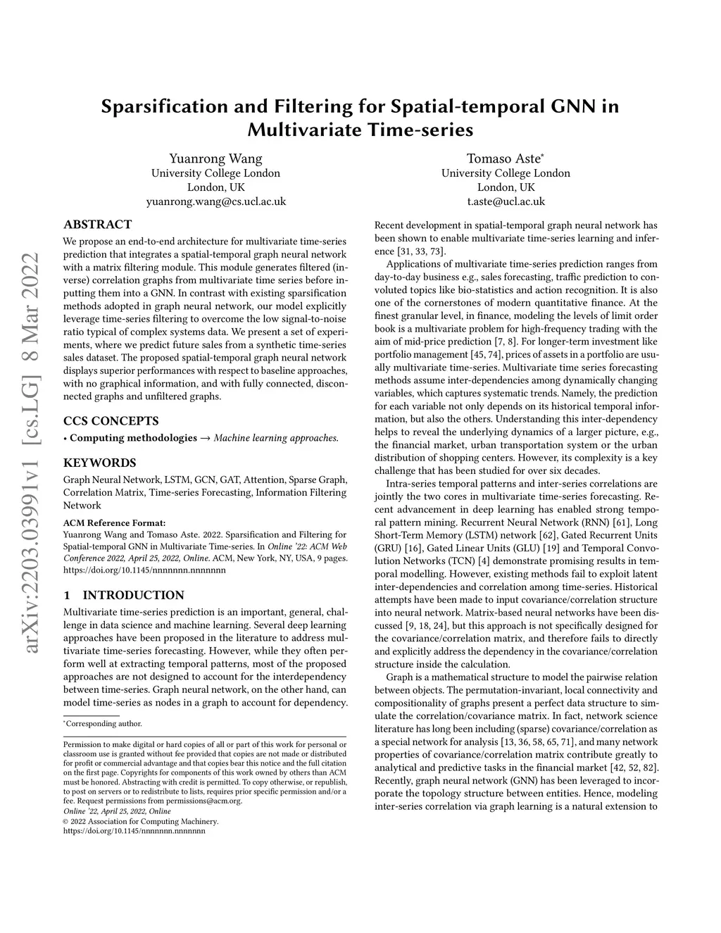Sparsification and Filtering for Spatial-temporal GNN in Multivariate