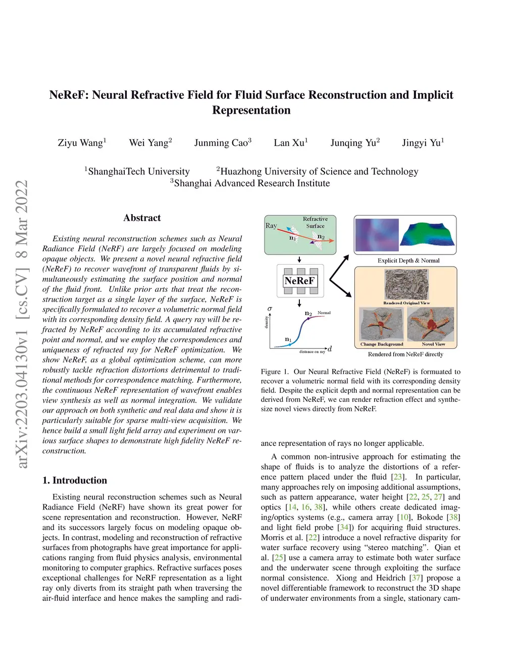 NeReF: Neural Refractive Field for Fluid Surface Reconstruction and