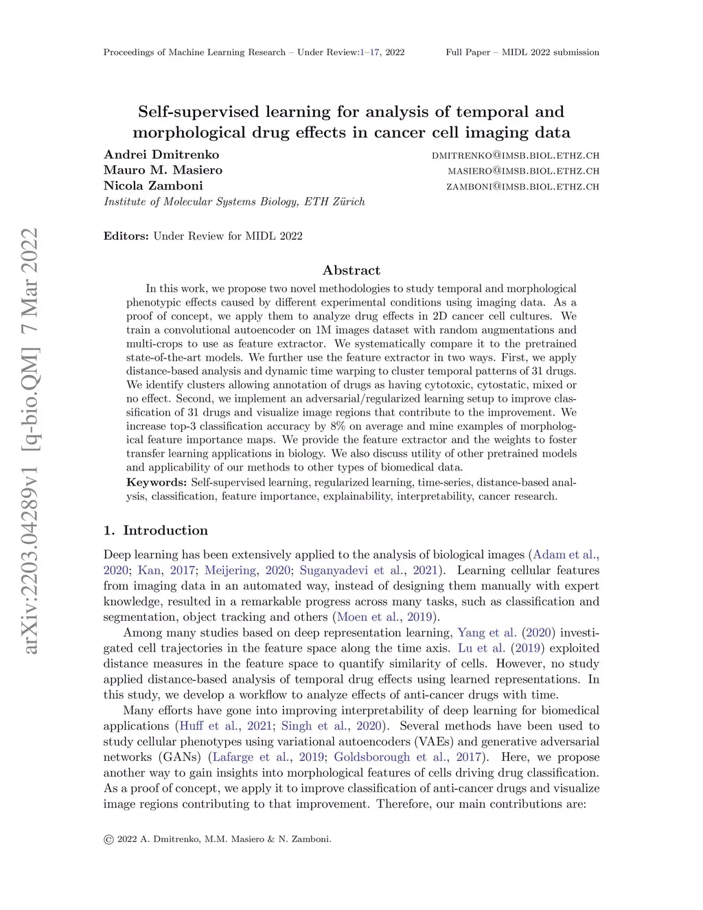 Self-supervised learning for analysis of temporal and morphological drug