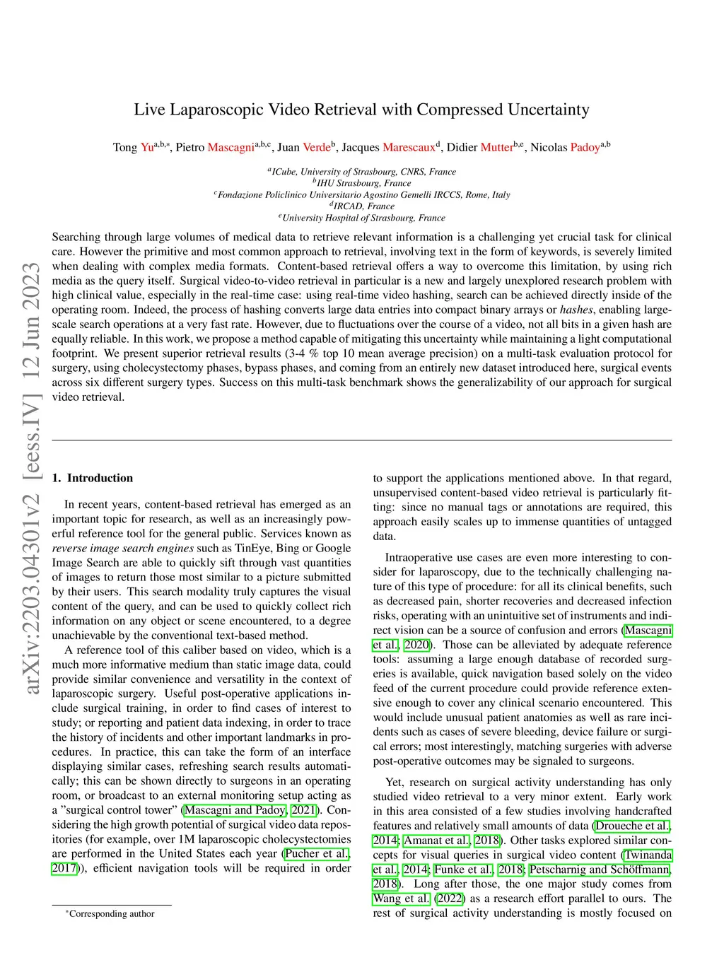 Live Laparoscopic Video Retrieval with Compressed Uncertainty