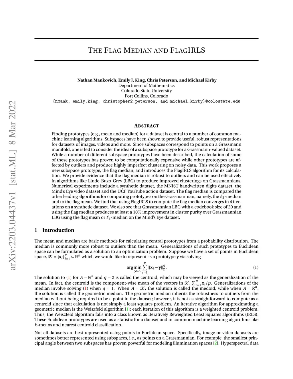 Finding prototypes (e.g., mean and median) for a dataset is central to a number of common machine learning algorithms. Subspaces have been shown to provide useful, robust representations for datasets of images, videos and more. Since subspaces correspond to points on a Grassmann manifold, one is led to consider the idea of a subspace prototype for a Grassmann-valued dataset. While a number of different subspace prototypes have been described, the calculation of some of these prototypes has proven to be computationally expensive while other prototypes are affected by outliers and produce highly imperfect clustering on noisy data. This work proposes a new subspace prototype, the flag median, and introduces the FlagIRLS algorithm for its calculation. We provide evidence that the flag median is robust to outliers and can be used effectively in algorithms like Linde-Buzo-Grey (LBG) to produce improved clusterings on Grassmannians. Numerical experiments include a synthetic dataset, the MNIST handwritten digits dataset, the Mind's Eye video dataset and the UCF YouTube action dataset. The flag median is compared the other leading algorithms for computing prototypes on the Grassmannian, namely, the -median and to the flag mean. We find that using FlagIRLS to compute the flag median converges in iterations on a synthetic dataset. We also see that Grassmannian LBG with a codebook size of and using the flag median produces at least a improvement in cluster purity over Grassmannian LBG using the flag mean or -median on the Mind's Eye dataset.