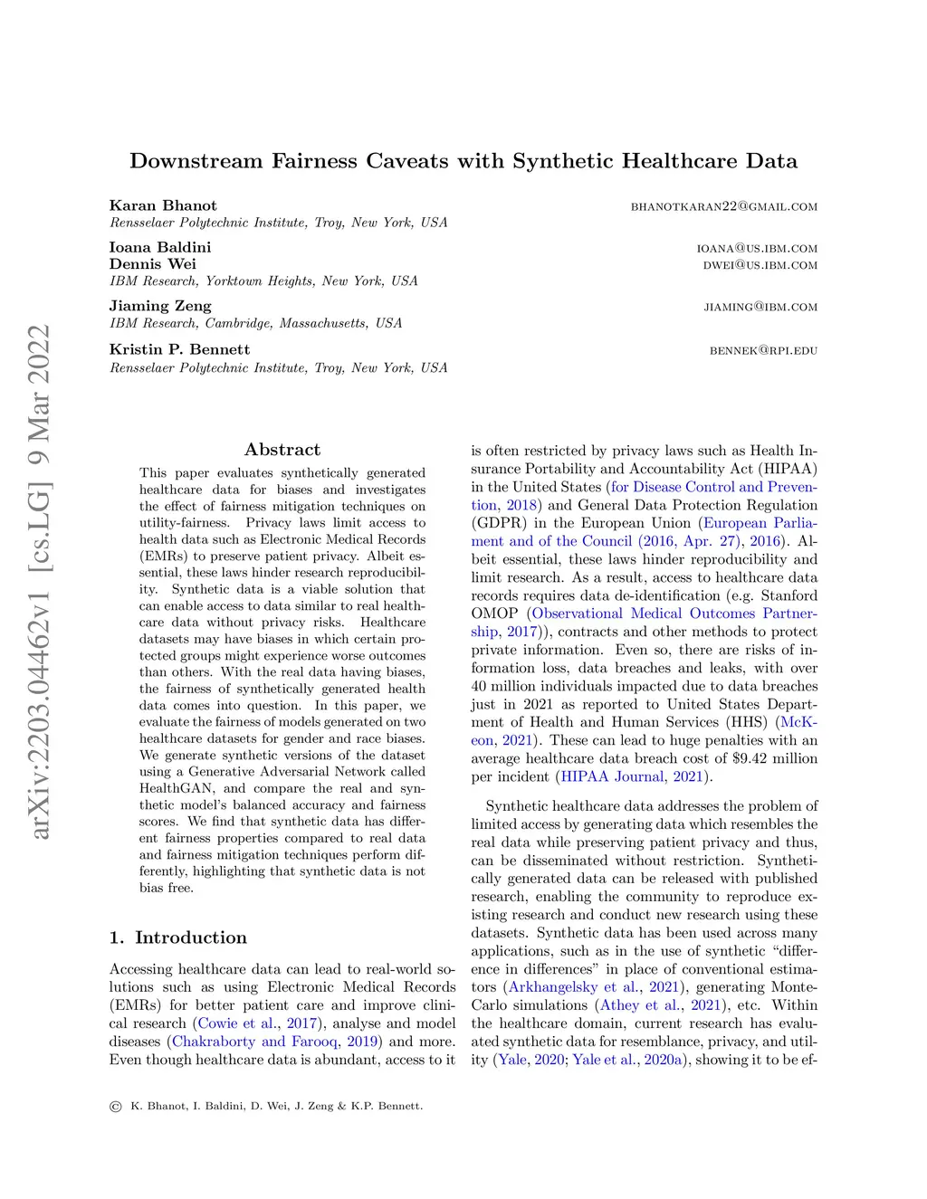 Downstream Fairness Caveats with Synthetic Healthcare Data