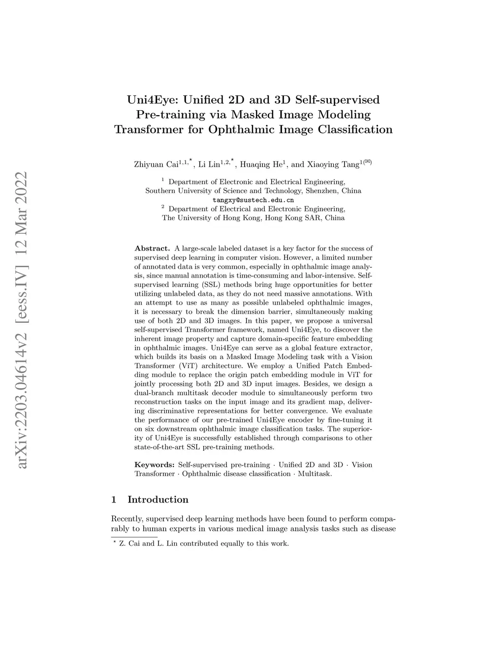 Uni4Eye: Unified 2D and 3D Self-supervised Pre-training via Masked Image