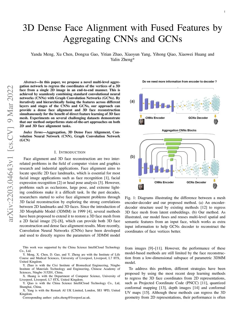 3D Dense Face Alignment with Fused Features by Aggregating CNNs and GCNs