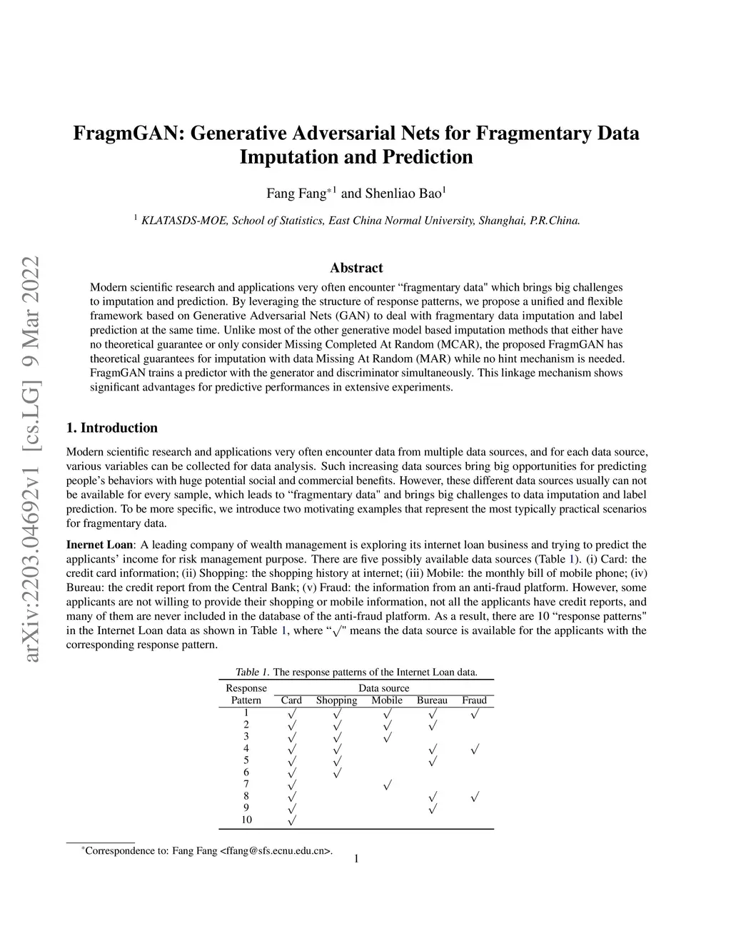 FragmGAN: Generative Adversarial Nets for Fragmentary Data Imputation