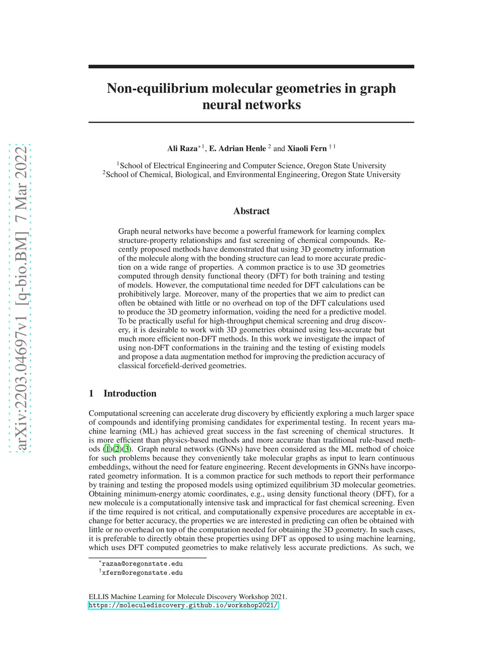 Graph neural networks have become a powerful framework for learning complex structure-property relationships and fast screening of chemical compounds. Recently proposed methods have demonstrated that using 3D geometry information of the molecule along with the bonding structure can lead to more accurate prediction on a wide range of properties. A common practice is to use 3D geometries computed through density functional theory (DFT) for both training and testing of models. However, the computational time needed for DFT calculations can be prohibitively large. Moreover, many of the properties that we aim to predict can often be obtained with little or no overhead on top of the DFT calculations used to produce the 3D geometry information, voiding the need for a predictive model. To be practically useful for high-throughput chemical screening and drug discovery, it is desirable to work with 3D geometries obtained using less-accurate but much more efficient non-DFT methods. In this work we investigate the impact of using non-DFT conformations in the training and the testing of existing models and propose a data augmentation method for improving the prediction accuracy of classical forcefield-derived geometries.