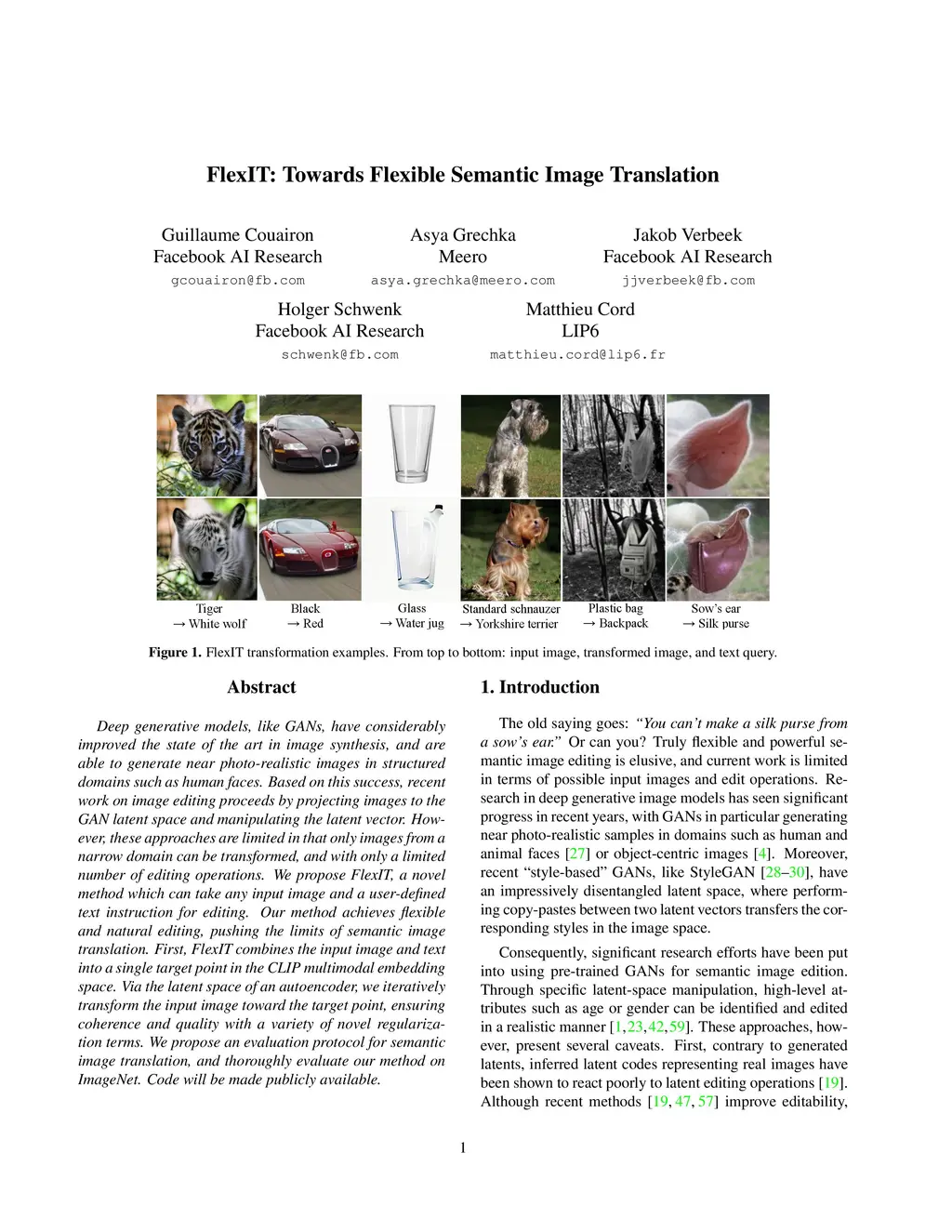 Deep generative models, like GANs, have considerably improved the state of the art in image synthesis, and are able to generate near photo-realistic images in structured domains such as human faces. Based on this success, recent work on image editing proceeds by projecting images to the GAN latent space and manipulating the latent vector. However, these approaches are limited in that only images from a narrow domain can be transformed, and with only a limited number of editing operations. We propose FlexIT, a novel method which can take any input image and a user-defined text instruction for editing. Our method achieves flexible and natural editing, pushing the limits of semantic image translation. First, FlexIT combines the input image and text into a single target point in the CLIP multimodal embedding space. Via the latent space of an auto-encoder, we iteratively transform the input image toward the target point, ensuring coherence and quality with a variety of novel regularization terms. We propose an evaluation protocol for semantic image translation, and thoroughly evaluate our method on ImageNet. Code will be made publicly available.
