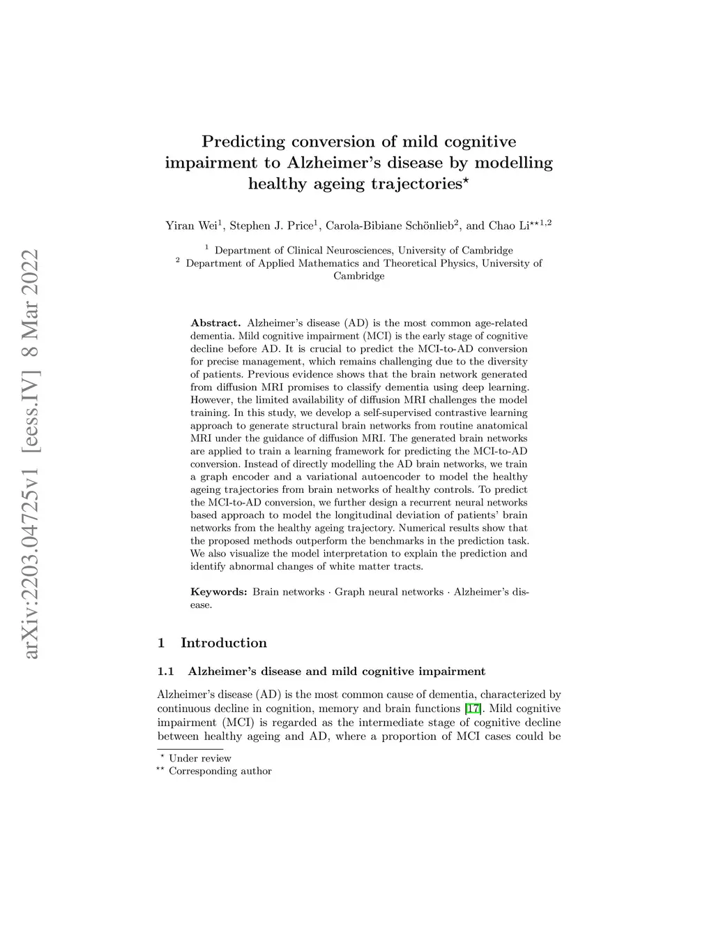 Predicting conversion of mild cognitive impairment to Alzheimer's