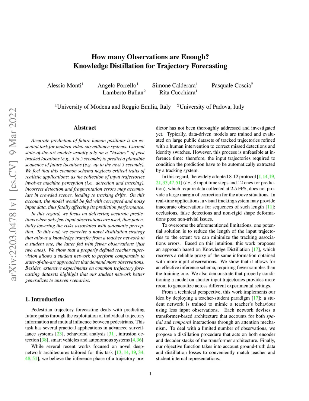 How many Observations are Enough? Knowledge Distillation for Trajectory