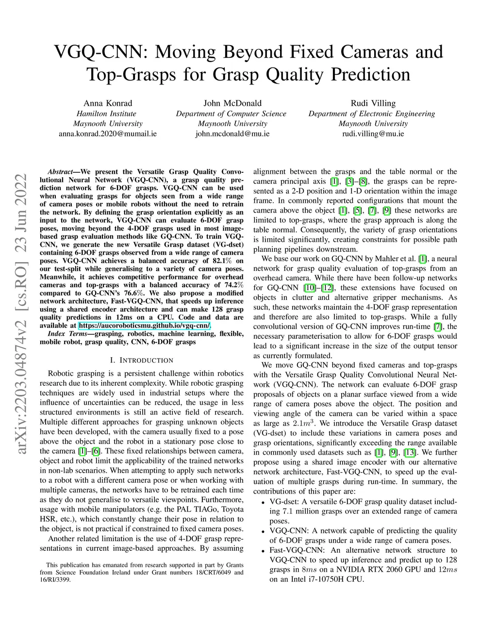 VGQ-CNN: Moving Beyond Fixed Cameras and Top-Grasps for Grasp Quality