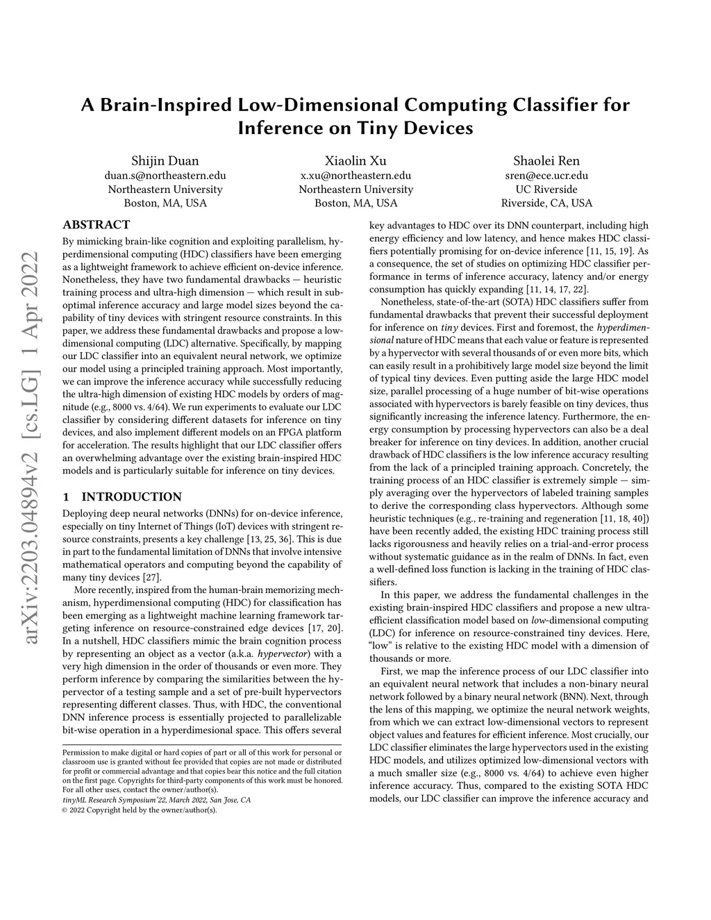 A Brain-Inspired Low-Dimensional Computing Classifier for Inference on