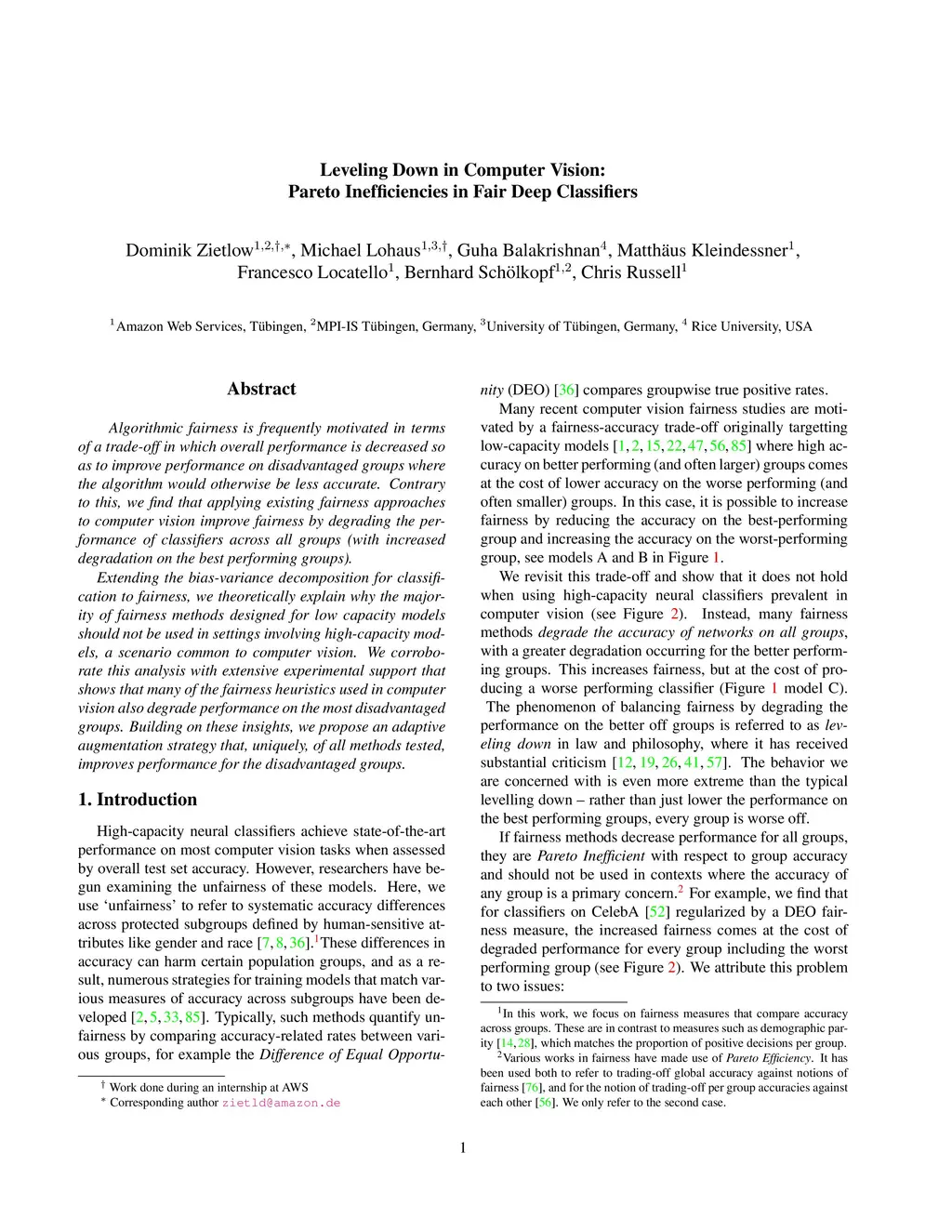 Leveling Down in Computer Vision: Pareto Inefficiencies in Fair Deep