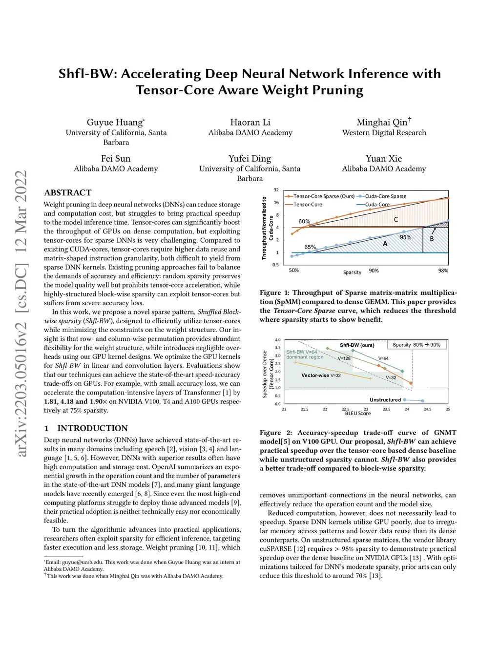 Shfl-BW: Accelerating Deep Neural Network Inference with Tensor-Core