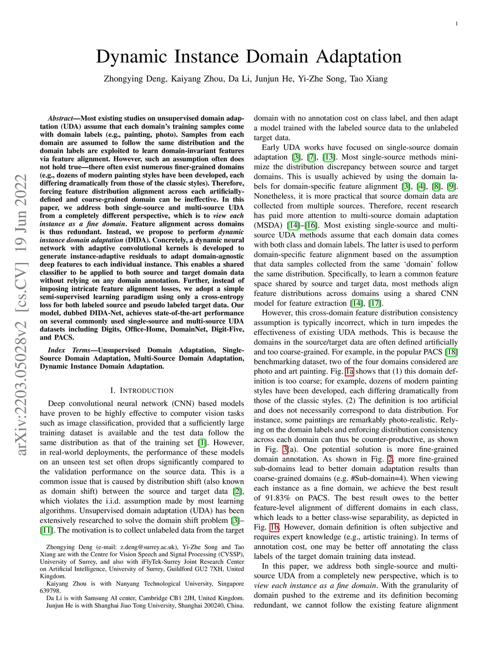 Dynamic Instance Domain Adaptation