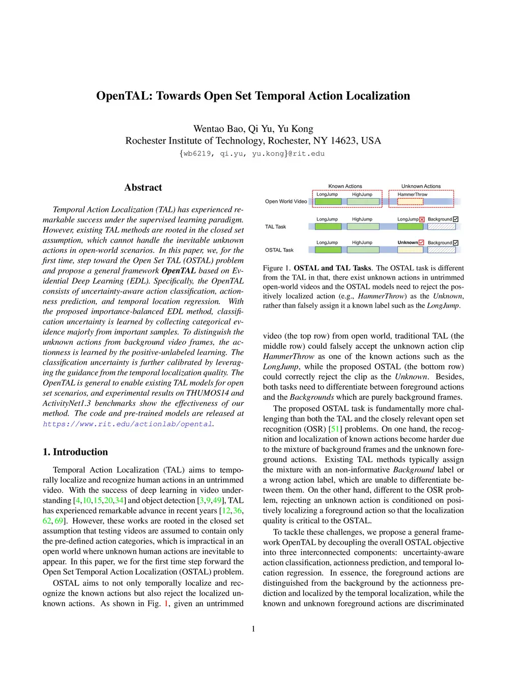 Temporal Action Localization (TAL) has experienced remarkable success under the supervised learning paradigm. However, existing TAL methods are rooted in the closed set assumption, which cannot handle the inevitable unknown actions in open-world scenarios. In this paper, we, for the first time, step toward the Open Set TAL (OSTAL) problem and propose a general framework OpenTAL based on Evidential Deep Learning (EDL). Specifically, the OpenTAL consists of uncertainty-aware action classification, actionness prediction, and temporal location regression. With the proposed importance-balanced EDL method, classification uncertainty is learned by collecting categorical evidence majorly from important samples. To distinguish the unknown actions from background video frames, the actionness is learned by the positive-unlabeled learning. The classification uncertainty is further calibrated by leveraging the guidance from the temporal localization quality. The OpenTAL is general to enable existing TAL models for open set scenarios, and experimental results on THUMOS14 and ActivityNet1.3 benchmarks show the effectiveness of our method. The code and pre-trained models are released at https://www.rit.edu/actionlab/opental.