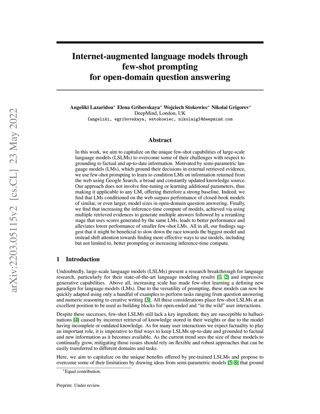 Internet-augmented language models through few-shot prompting for