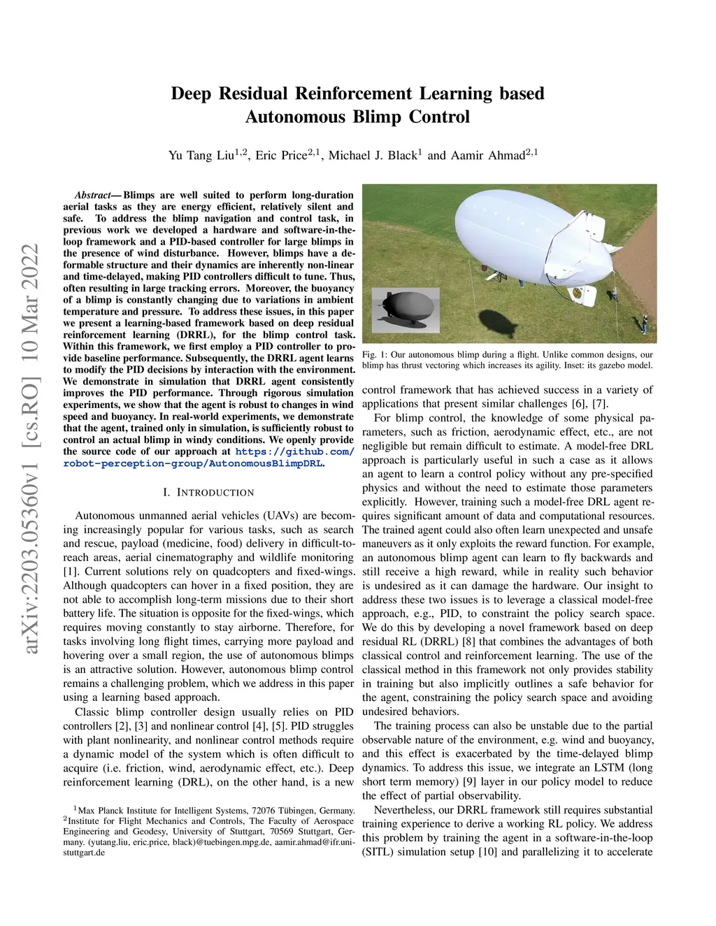 Deep Residual Reinforcement Learning based Autonomous Blimp Control
