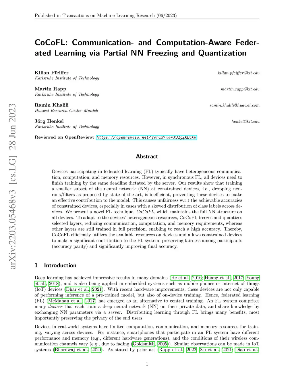 CoCoFL: Communication- and Computation-Aware Federated Learning via