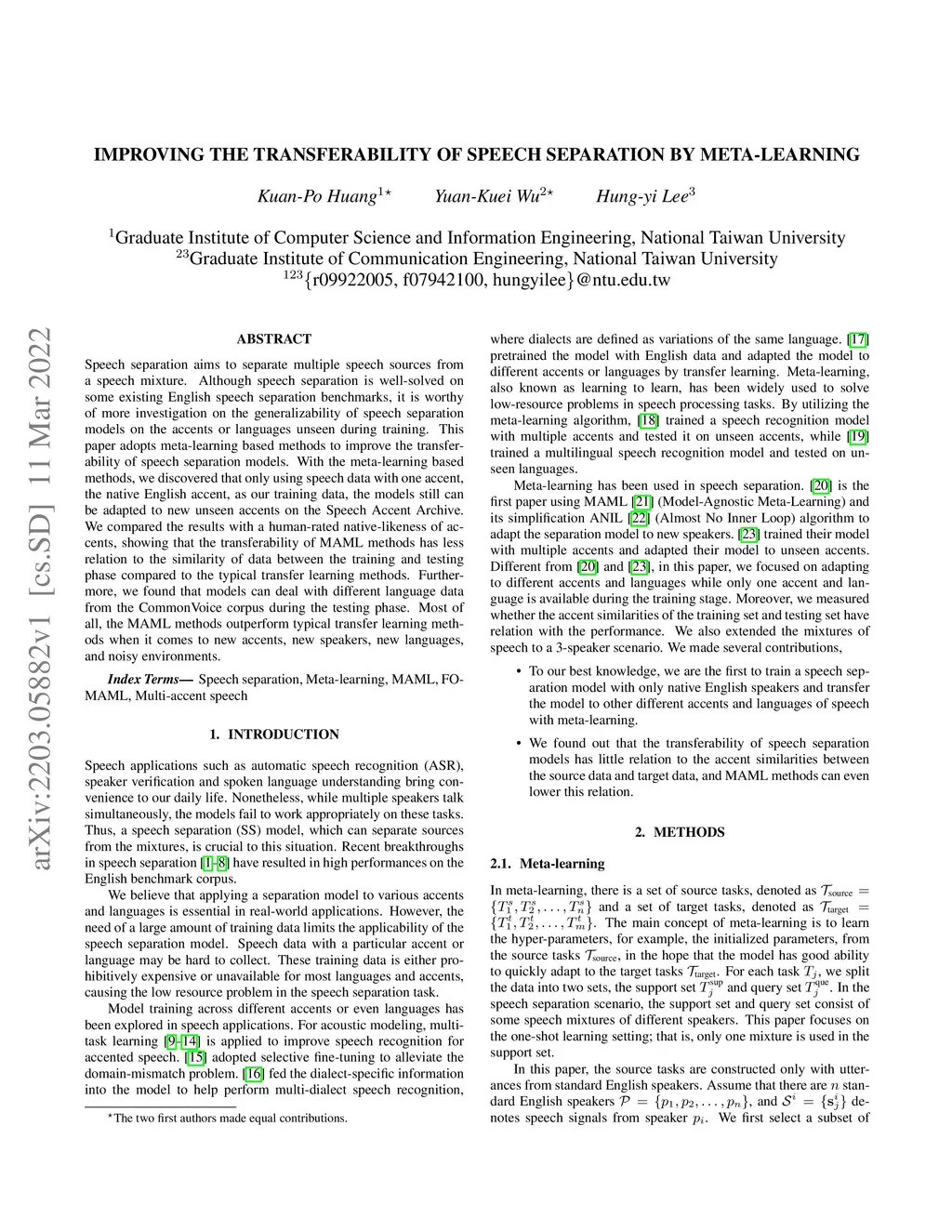 Speech separation aims to separate multiple speech sources from a speech mixture. Although speech separation is well-solved on some existing English speech separation benchmarks, it is worthy of more investigation on the generalizability of speech separation models on the accents or languages unseen during training. This paper adopts meta-learning based methods to improve the transferability of speech separation models. With the meta-learning based methods, we discovered that only using speech data with one accent, the native English accent, as our training data, the models still can be adapted to new unseen accents on the Speech Accent Archive. We compared the results with a human-rated native-likeness of accents, showing that the transferability of MAML methods has less relation to the similarity of data between the training and testing phase compared to the typical transfer learning methods. Furthermore, we found that models can deal with different language data from the CommonVoice corpus during the testing phase. Most of all, the MAML methods outperform typical transfer learning methods when it comes to new accents, new speakers, new languages, and noisy environments.