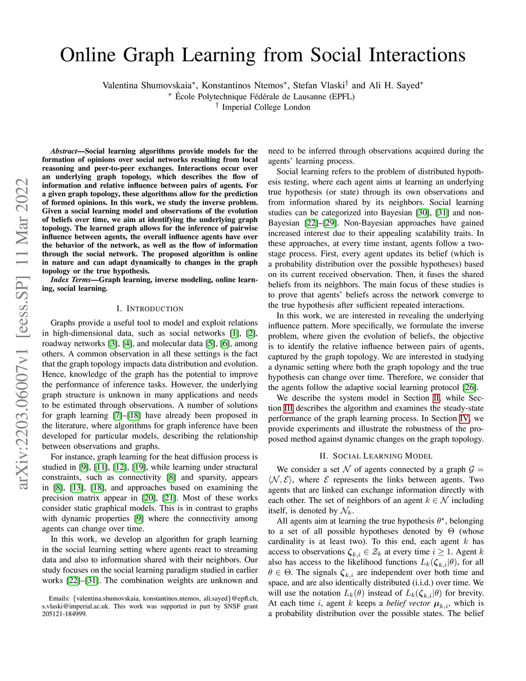 Social learning algorithms provide models for the formation of opinions over social networks resulting from local reasoning and peer-to-peer exchanges. Interactions occur over an underlying graph topology, which describes the flow of information and relative influence between pairs of agents. For a given graph topology, these algorithms allow for the prediction of formed opinions. In this work, we study the inverse problem. Given a social learning model and observations of the evolution of beliefs over time, we aim at identifying the underlying graph topology. The learned graph allows for the inference of pairwise influence between agents, the overall influence agents have over the behavior of the network, as well as the flow of information through the social network. The proposed algorithm is online in nature and can adapt dynamically to changes in the graph topology or the true hypothesis.