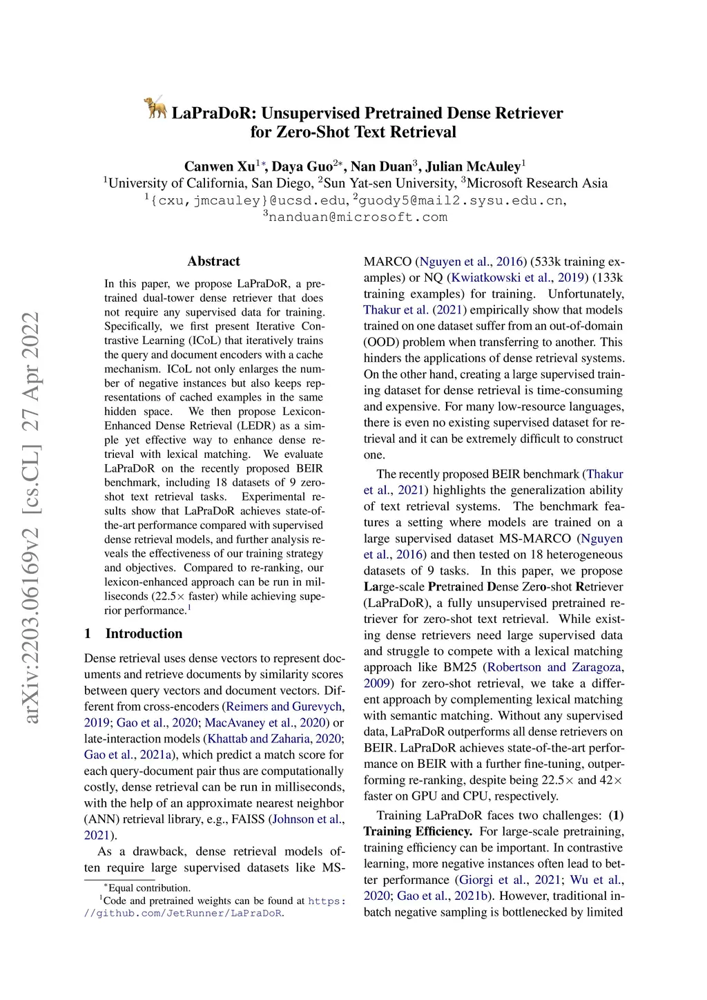 LaPraDoR: Unsupervised Pretrained Dense Retriever for Zero-Shot Text