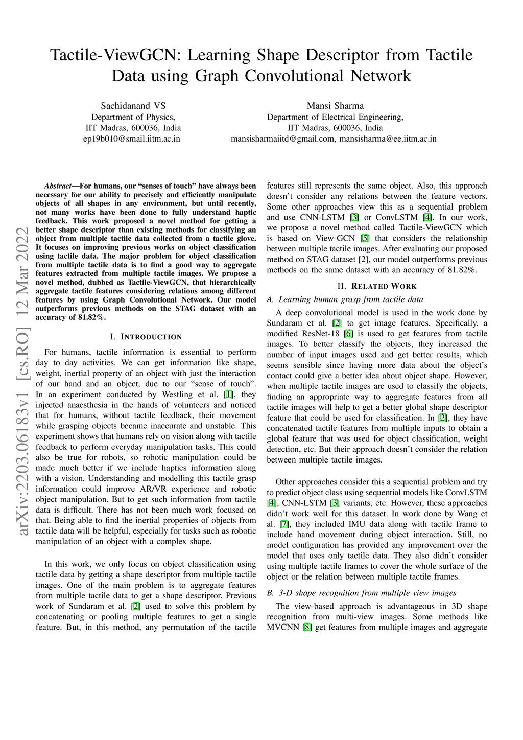 For humans, our "senses of touch" have always been necessary for our ability to precisely and efficiently manipulate objects of all shapes in any environment, but until recently, not many works have been done to fully understand haptic feedback. This work proposed a novel method for getting a better shape descriptor than existing methods for classifying an object from multiple tactile data collected from a tactile glove. It focuses on improving previous works on object classification using tactile data. The major problem for object classification from multiple tactile data is to find a good way to aggregate features extracted from multiple tactile images. We propose a novel method, dubbed as Tactile-ViewGCN, that hierarchically aggregate tactile features considering relations among different features by using Graph Convolutional Network. Our model outperforms previous methods on the STAG dataset with an accuracy of 81.82%.