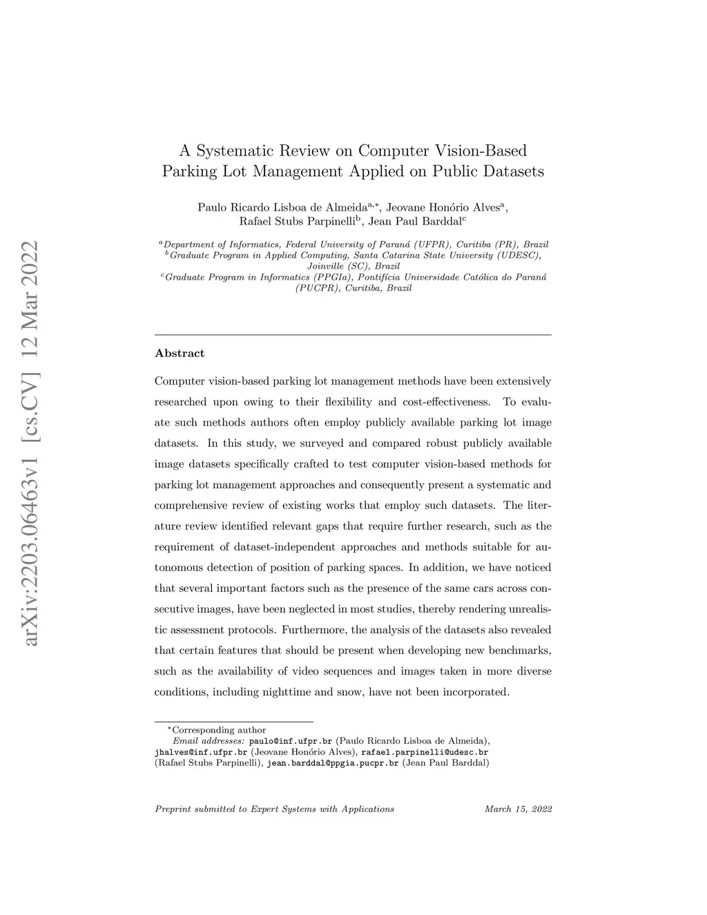 Computer vision-based parking lot management methods have been extensively researched upon owing to their flexibility and cost-effectiveness. To evaluate such methods authors often employ publicly available parking lot image datasets. In this study, we surveyed and compared robust publicly available image datasets specifically crafted to test computer vision-based methods for parking lot management approaches and consequently present a systematic and comprehensive review of existing works that employ such datasets. The literature review identified relevant gaps that require further research, such as the requirement of dataset-independent approaches and methods suitable for autonomous detection of position of parking spaces. In addition, we have noticed that several important factors such as the presence of the same cars across consecutive images, have been neglected in most studies, thereby rendering unrealistic assessment protocols. Furthermore, the analysis of the datasets also revealed that certain features that should be present when developing new benchmarks, such as the availability of video sequences and images taken in more diverse conditions, including nighttime and snow, have not been incorporated.