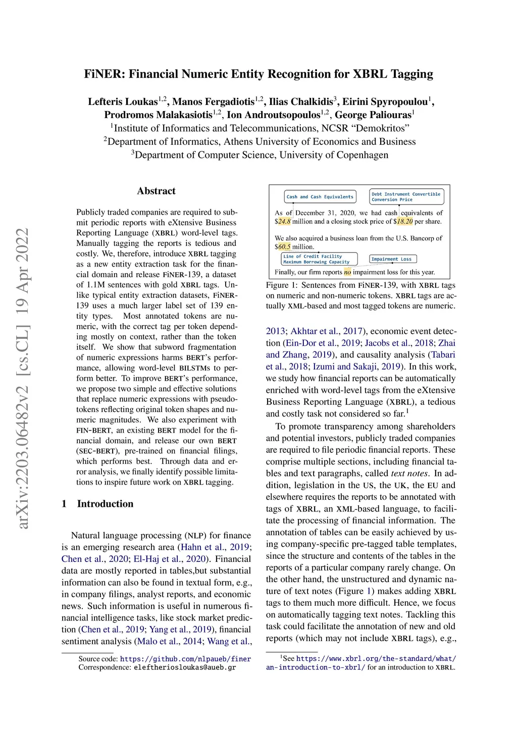 FiNER: Financial Numeric Entity Recognition for XBRL Tagging