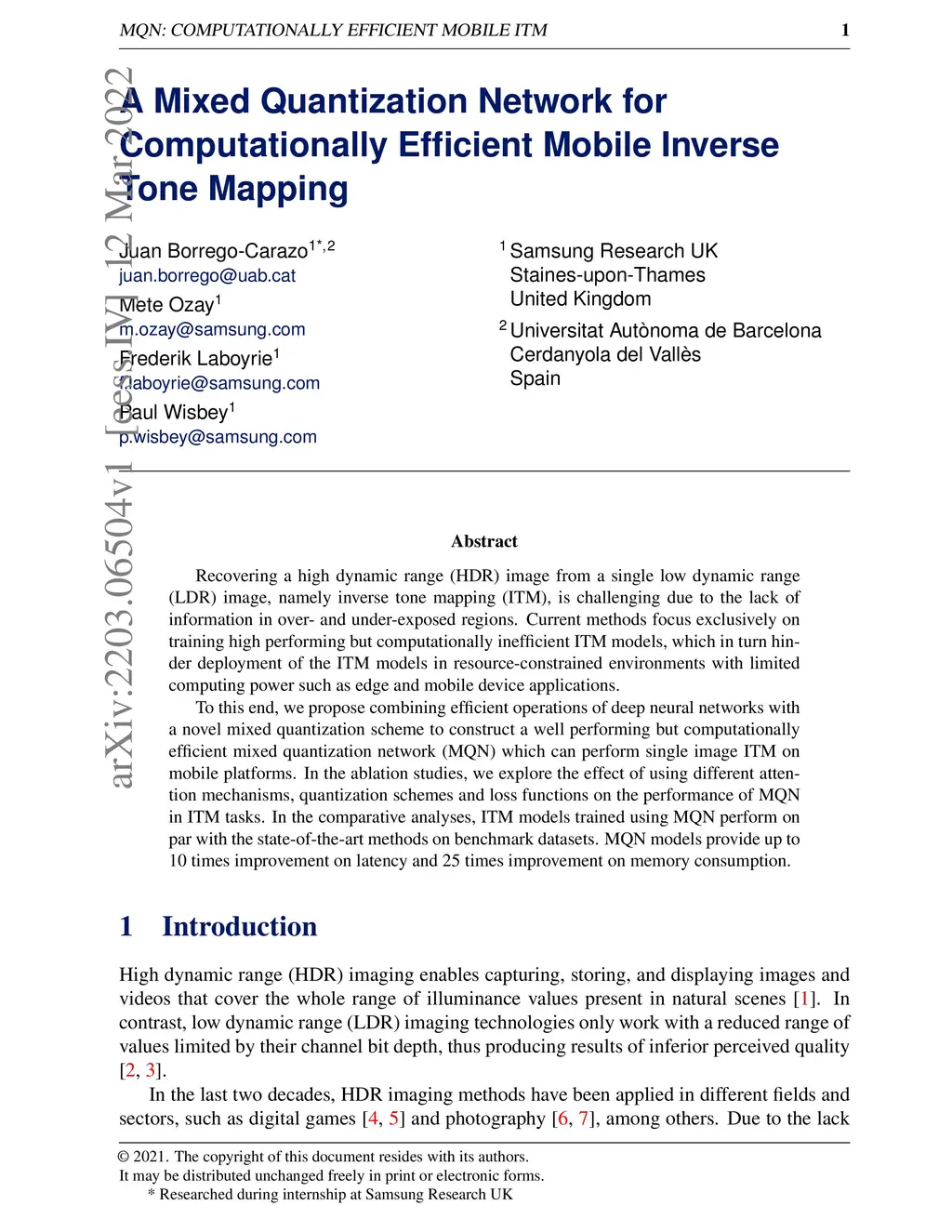 Recovering a high dynamic range (HDR) image from a single low dynamic range (LDR) image, namely inverse tone mapping (ITM), is challenging due to the lack of information in over- and under-exposed regions. Current methods focus exclusively on training high-performing but computationally inefficient ITM models, which in turn hinder deployment of the ITM models in resource-constrained environments with limited computing power such as edge and mobile device applications. To this end, we propose combining efficient operations of deep neural networks with a novel mixed quantization scheme to construct a well-performing but computationally efficient mixed quantization network (MQN) which can perform single image ITM on mobile platforms. In the ablation studies, we explore the effect of using different attention mechanisms, quantization schemes, and loss functions on the performance of MQN in ITM tasks. In the comparative analyses, ITM models trained using MQN perform on par with the state-of-the-art methods on benchmark datasets. MQN models provide up to 10 times improvement on latency and 25 times improvement on memory consumption.