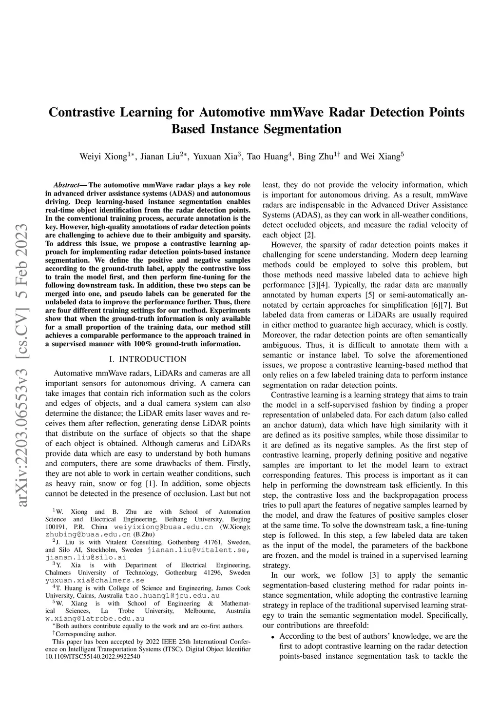 Contrastive Learning for Automotive mmWave Radar Detection Points Based