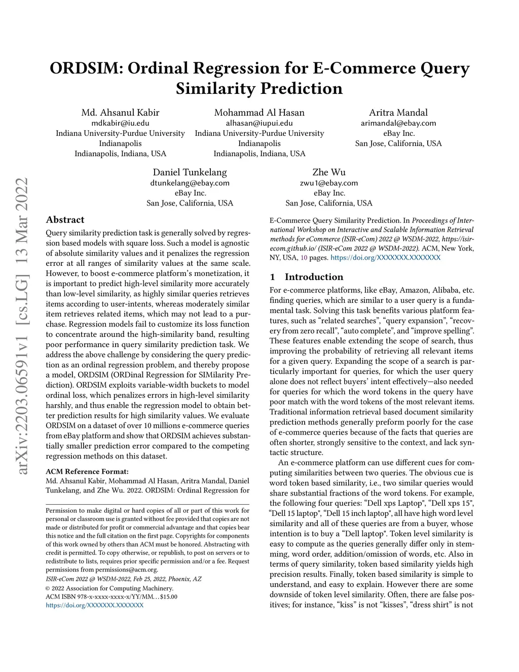 ORDSIM: Ordinal Regression for E-Commerce Query Similarity Prediction