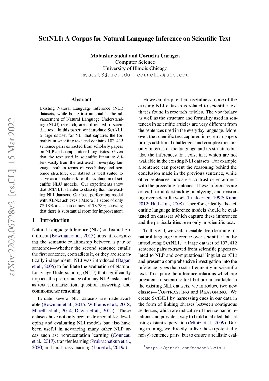 SciNLI: A Corpus for Natural Language Inference on Scientific Text