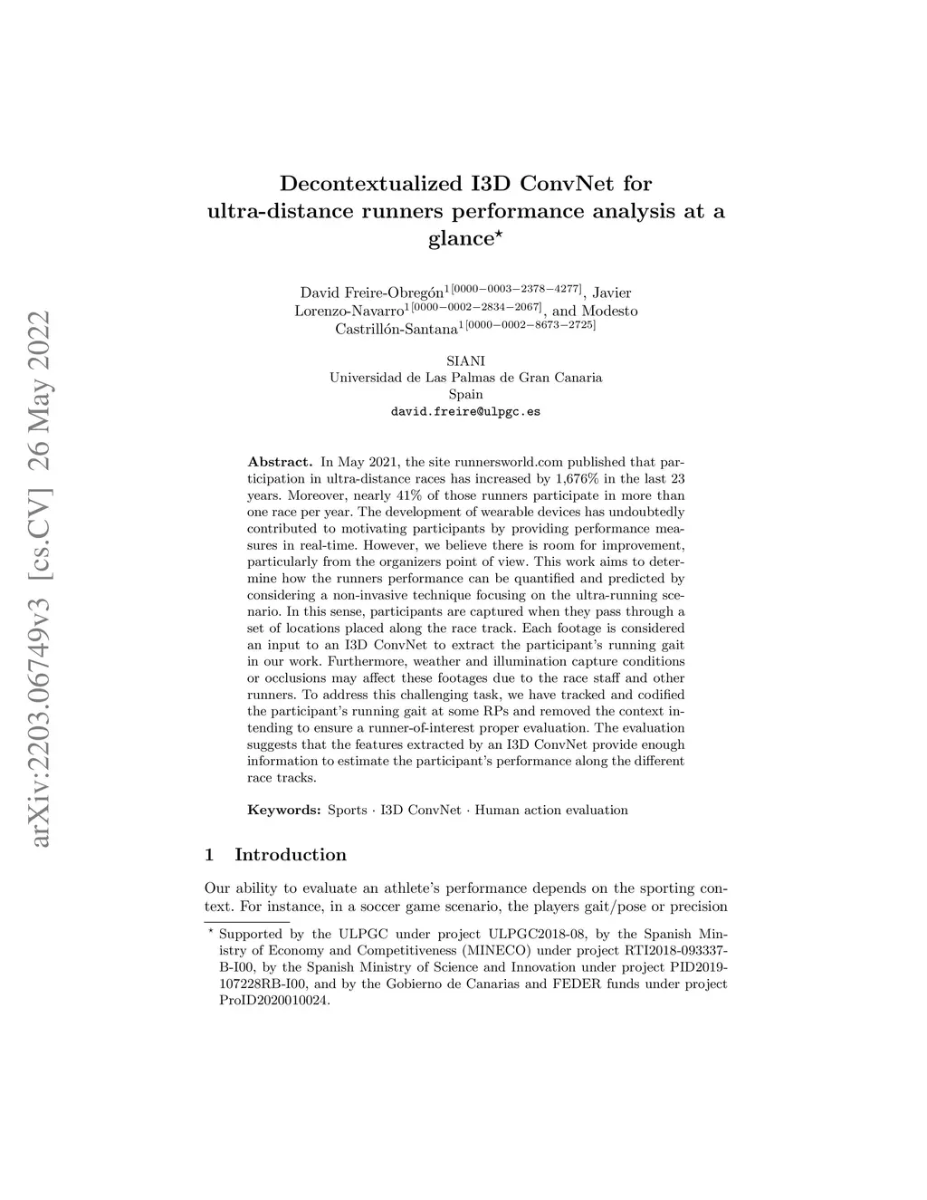 Decontextualized I3D ConvNet for ultra-distance runners performance