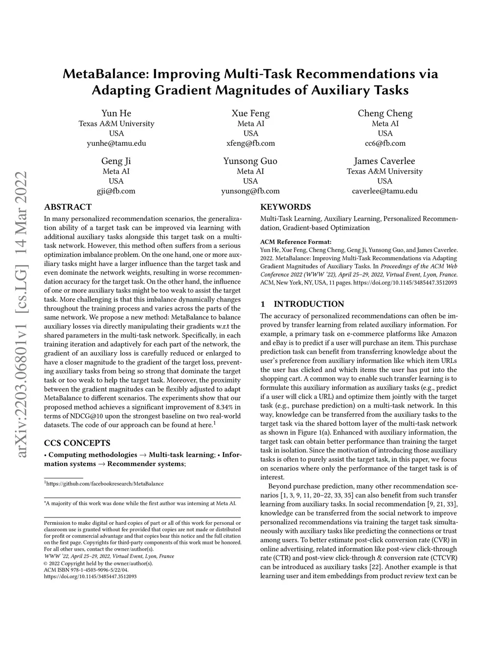 MetaBalance: Improving Multi-Task Recommendations via Adapting Gradient