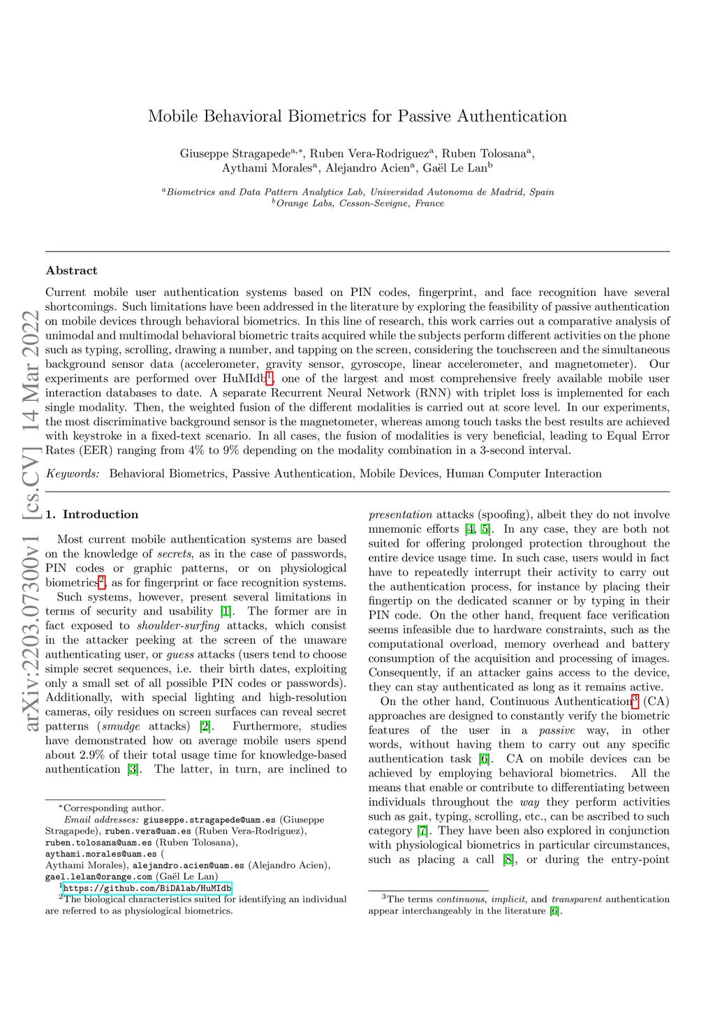 Mobile Behavioral Biometrics for Passive Authentication