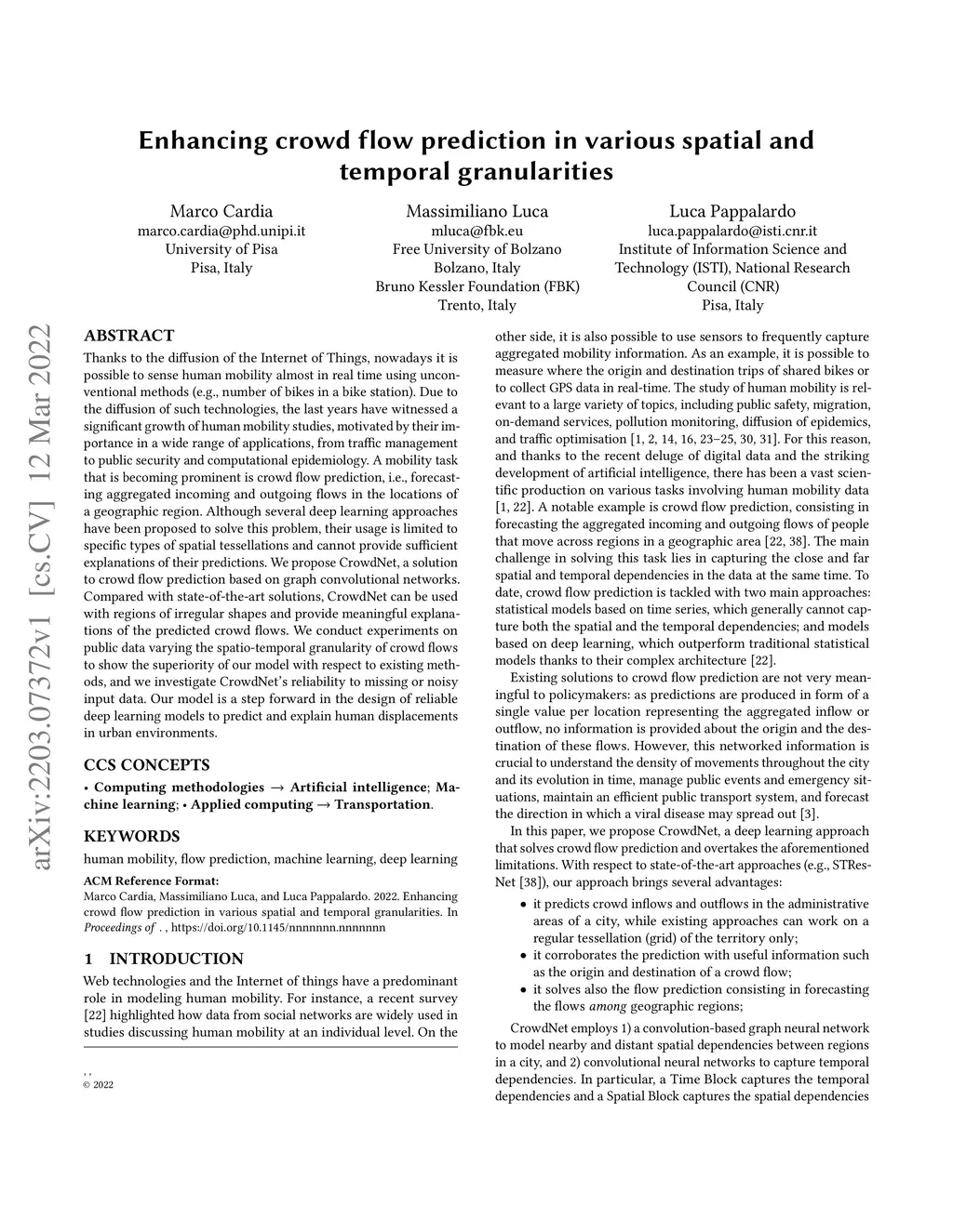 Thanks to the diffusion of the Internet of Things, nowadays it is possible to sense human mobility almost in real time using unconventional methods (e.g., number of bikes in a bike station). Due to the diffusion of such technologies, the last years have witnessed a significant growth of human mobility studies, motivated by their importance in a wide range of applications, from traffic management to public security and computational epidemiology. A mobility task that is becoming prominent is crowd flow prediction, i.e., forecasting aggregated incoming and outgoing flows in the locations of a geographic region. Although several deep learning approaches have been proposed to solve this problem, their usage is limited to specific types of spatial tessellations and cannot provide sufficient explanations of their predictions. We propose CrowdNet, a solution to crowd flow prediction based on graph convolutional networks. Compared with state-of-the-art solutions, CrowdNet can be used with regions of irregular shapes and provide meaningful explanations of the predicted crowd flows. We conduct experiments on public data varying the spatio-temporal granularity of crowd flows to show the superiority of our model with respect to existing methods, and we investigate CrowdNet's reliability to missing or noisy input data. Our model is a step forward in the design of reliable deep learning models to predict and explain human displacements in urban environments.