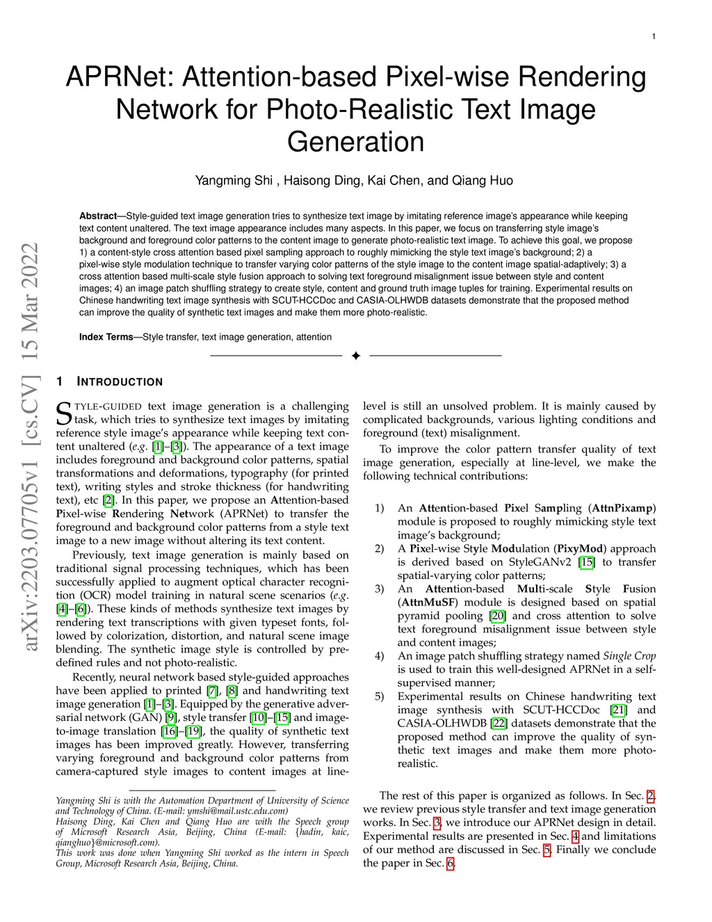 Style-guided text image generation tries to synthesize text image by imitating reference image's appearance while keeping text content unaltered. The text image appearance includes many aspects. In this paper, we focus on transferring style image's background and foreground color patterns to the content image to generate photo-realistic text image. To achieve this goal, we propose 1) a content-style cross attention based pixel sampling approach to roughly mimicking the style text image's background; 2) a pixel-wise style modulation technique to transfer varying color patterns of the style image to the content image spatial-adaptively; 3) a cross attention based multi-scale style fusion approach to solving text foreground misalignment issue between style and content images; 4) an image patch shuffling strategy to create style, content and ground truth image tuples for training. Experimental results on Chinese handwriting text image synthesis with SCUT-HCCDoc and CASIA-OLHWDB datasets demonstrate that the proposed method can improve the quality of synthetic text images and make them more photo-realistic.