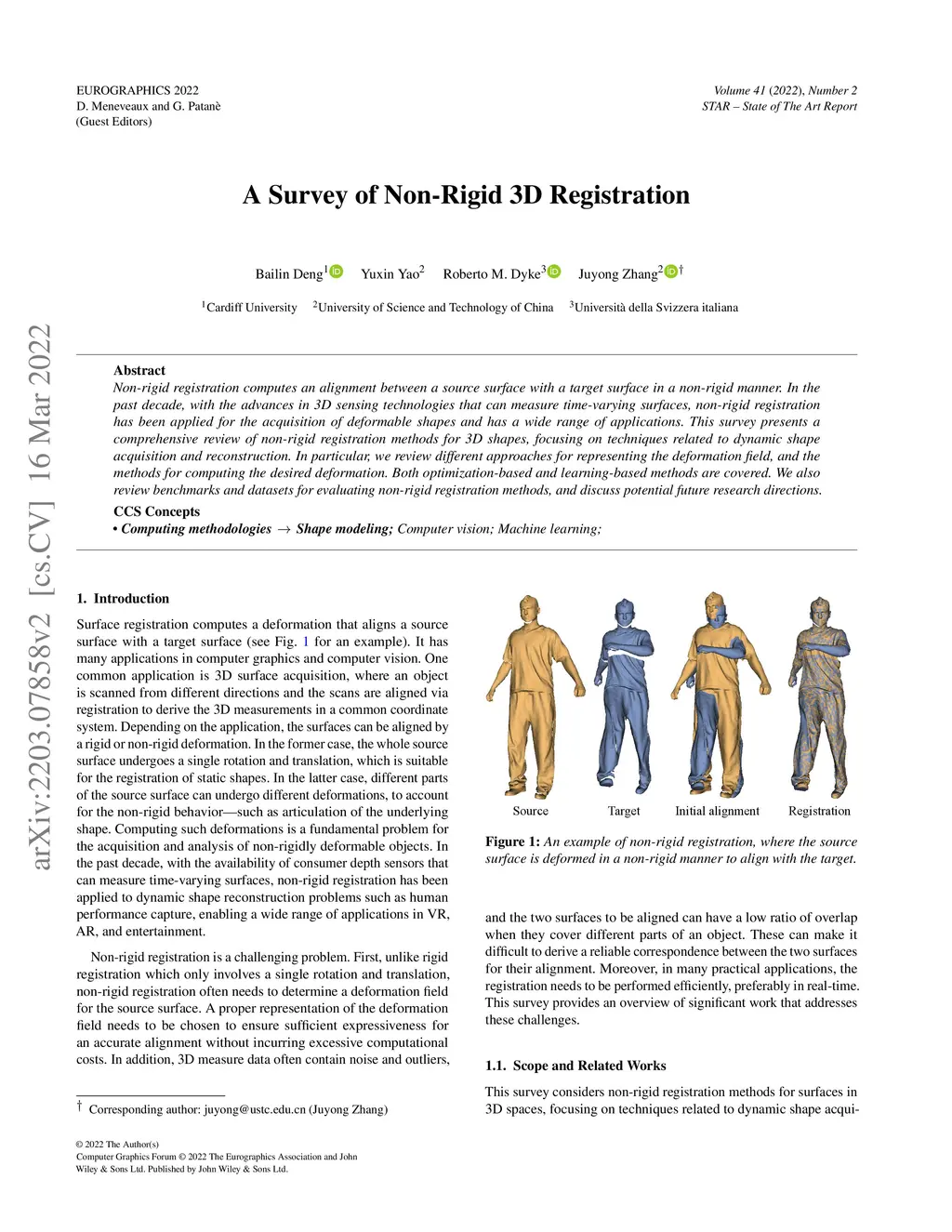 Non-rigid registration computes an alignment between a source surface with a target surface in a non-rigid manner. In the past decade, with the advances in 3D sensing technologies that can measure time-varying surfaces, non-rigid registration has been applied for the acquisition of deformable shapes and has a wide range of applications. This survey presents a comprehensive review of non-rigid registration methods for 3D shapes, focusing on techniques related to dynamic shape acquisition and reconstruction. In particular, we review different approaches for representing the deformation field, and the methods for computing the desired deformation. Both optimization-based and learning-based methods are covered. We also review benchmarks and datasets for evaluating non-rigid registration methods, and discuss potential future research directions.