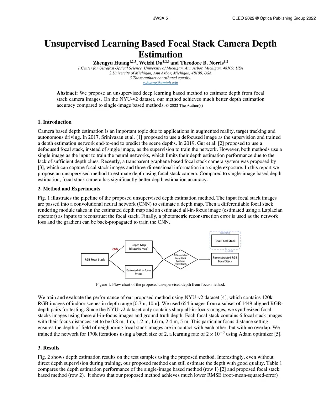 Unsupervised Learning Based Focal Stack Camera Depth Estimation