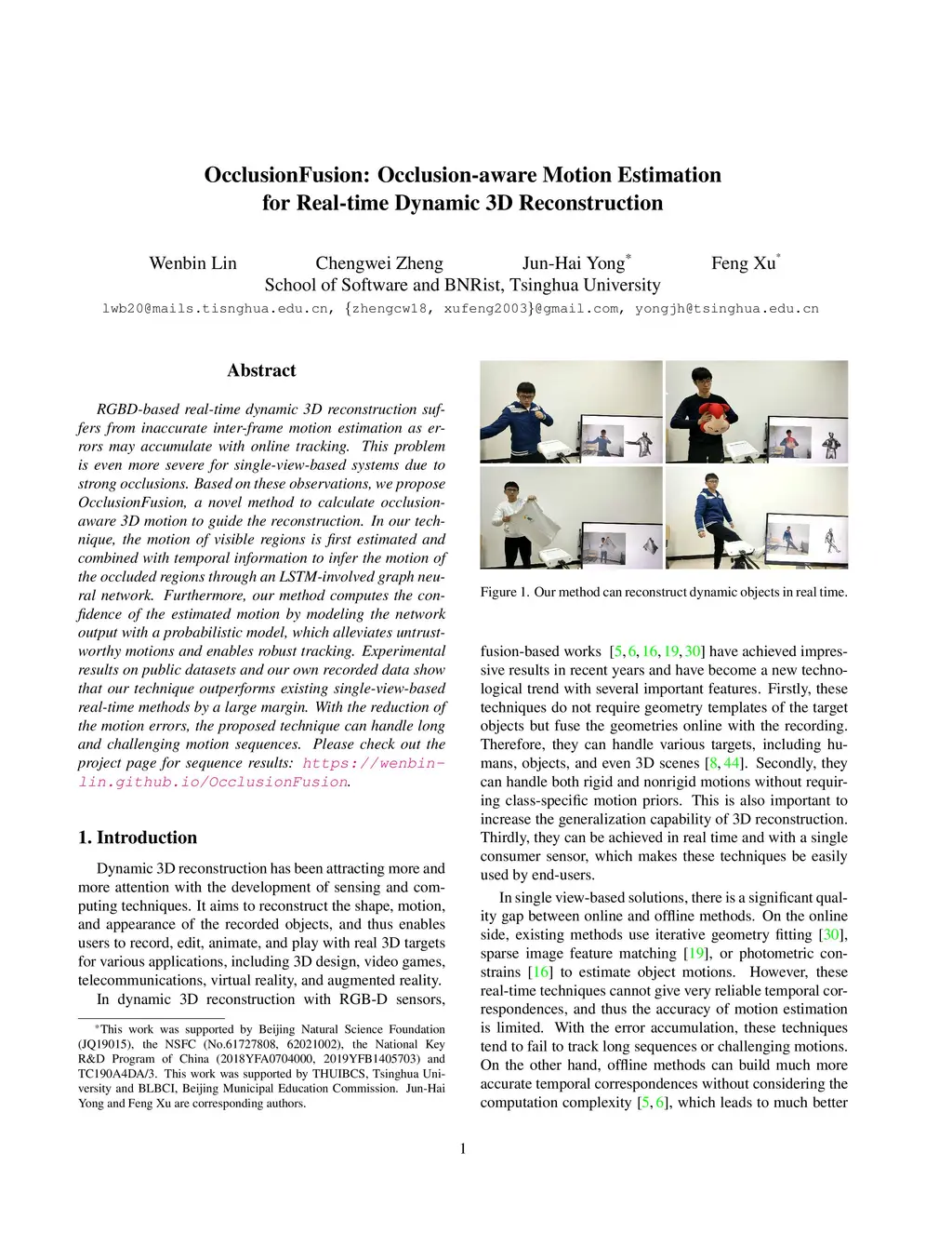 OcclusionFusion: Occlusion-aware Motion Estimation for Real-time Dynamic