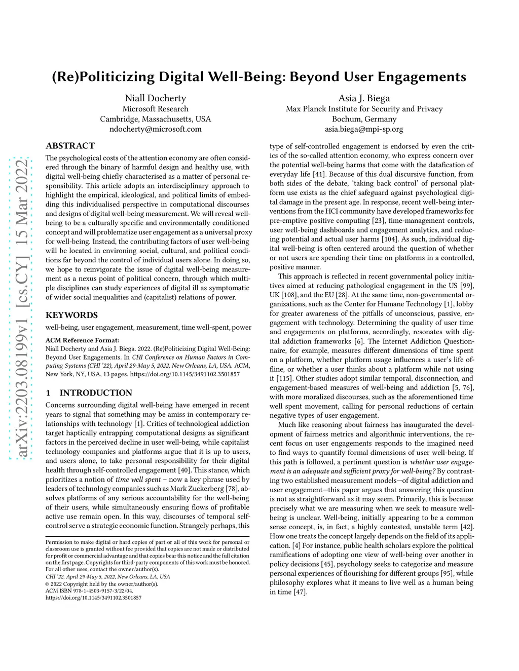 (Re)Politicizing Digital Well-Being: Beyond User Engagements