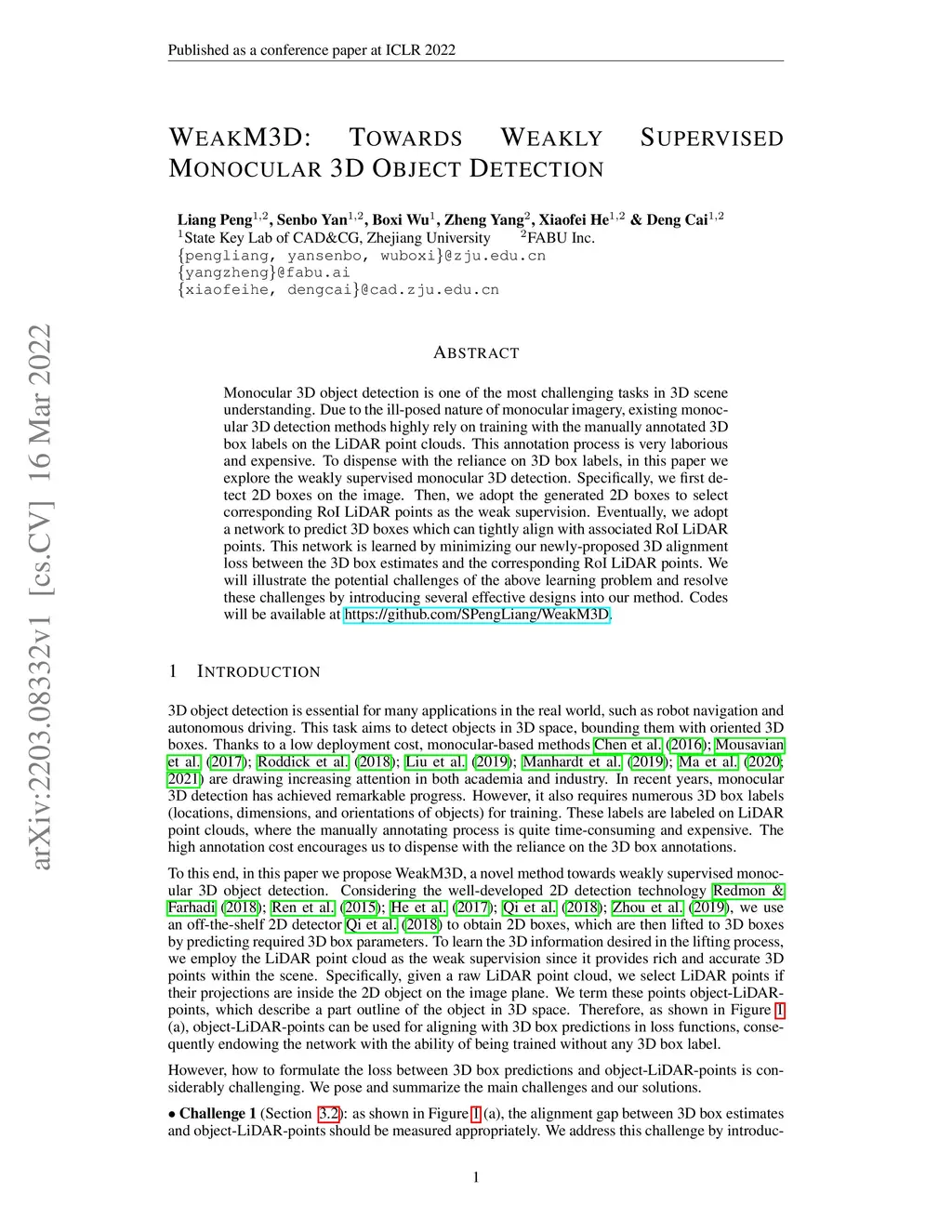 WeakM3D: Towards Weakly Supervised Monocular 3D Object Detection
