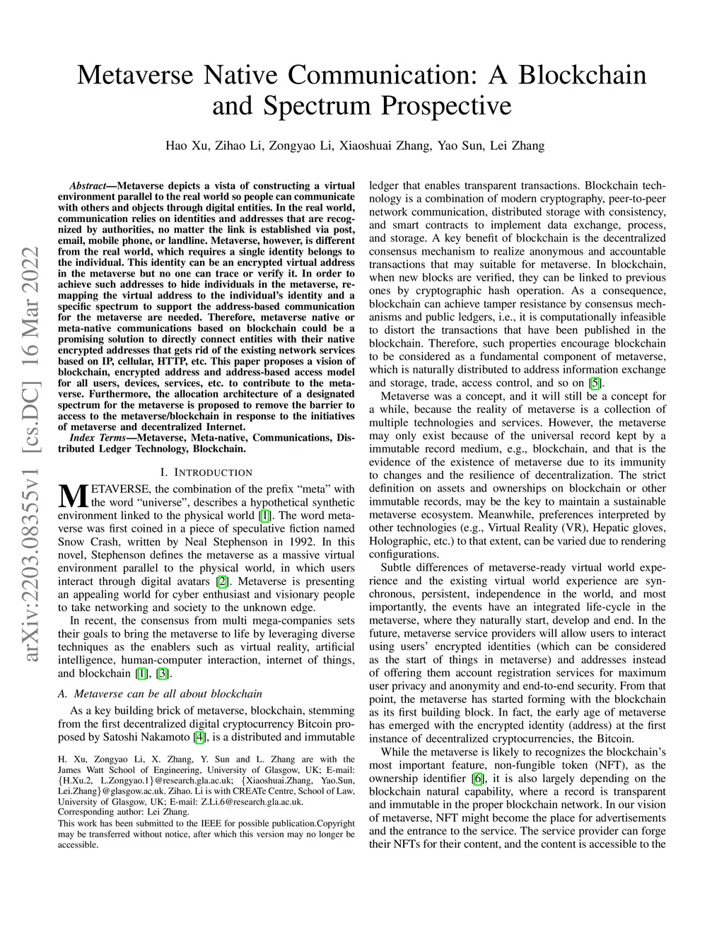 Metaverse Native Communication: A Blockchain and Spectrum Prospective