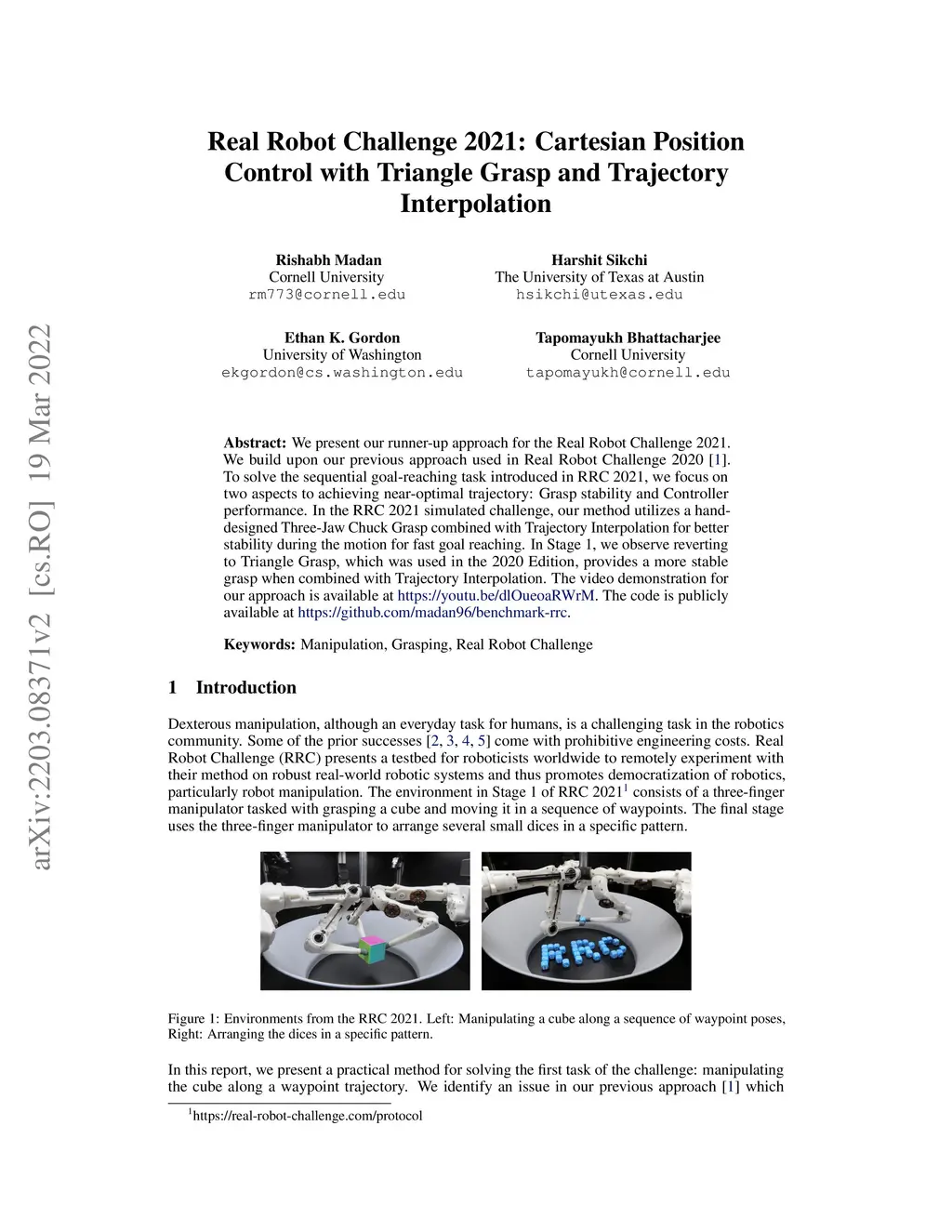 Real Robot Challenge 2021: Cartesian Position Control with Triangle