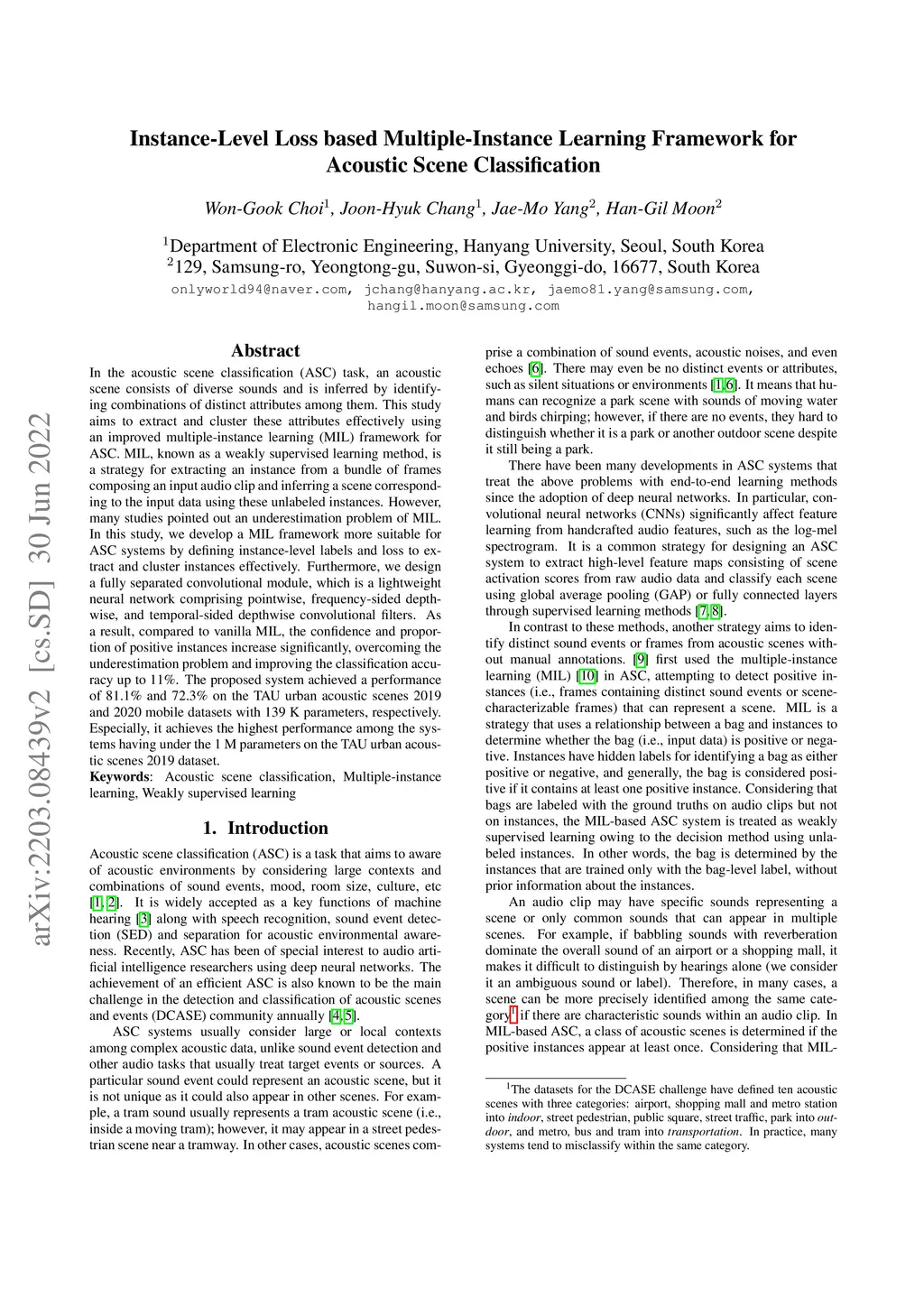 In the acoustic scene classification (ASC) task, an acoustic scene consists of diverse sounds and is inferred by identifying combinations of distinct attributes among them. This study aims to extract and cluster these attributes effectively using an improved multiple-instance learning (MIL) framework for ASC. MIL, known as a weakly supervised learning method, is a strategy for extracting an instance from a bundle of frames composing an input audio clip and inferring a scene corresponding to the input data using these unlabeled instances. However, many studies pointed out an underestimation problem of MIL. In this study, we develop a MIL framework more suitable for ASC systems by defining instance-level labels and loss to extract and cluster instances effectively. Furthermore, we design a fully separated convolutional module, which is a lightweight neural network comprising pointwise, frequency-sided depthwise, and temporal-sided depthwise convolutional filters. As a result, compared to vanilla MIL, the confidence and proportion of positive instances increase significantly, overcoming the underestimation problem and improving the classification accuracy up to 11%. The proposed system achieved a performance of 81.1% and 72.3% on the TAU urban acoustic scenes 2019 and 2020 mobile datasets with 139 K parameters, respectively. Especially, it achieves the highest performance among the systems having under the 1 M parameters on the TAU urban acoustic scenes 2019 dataset.