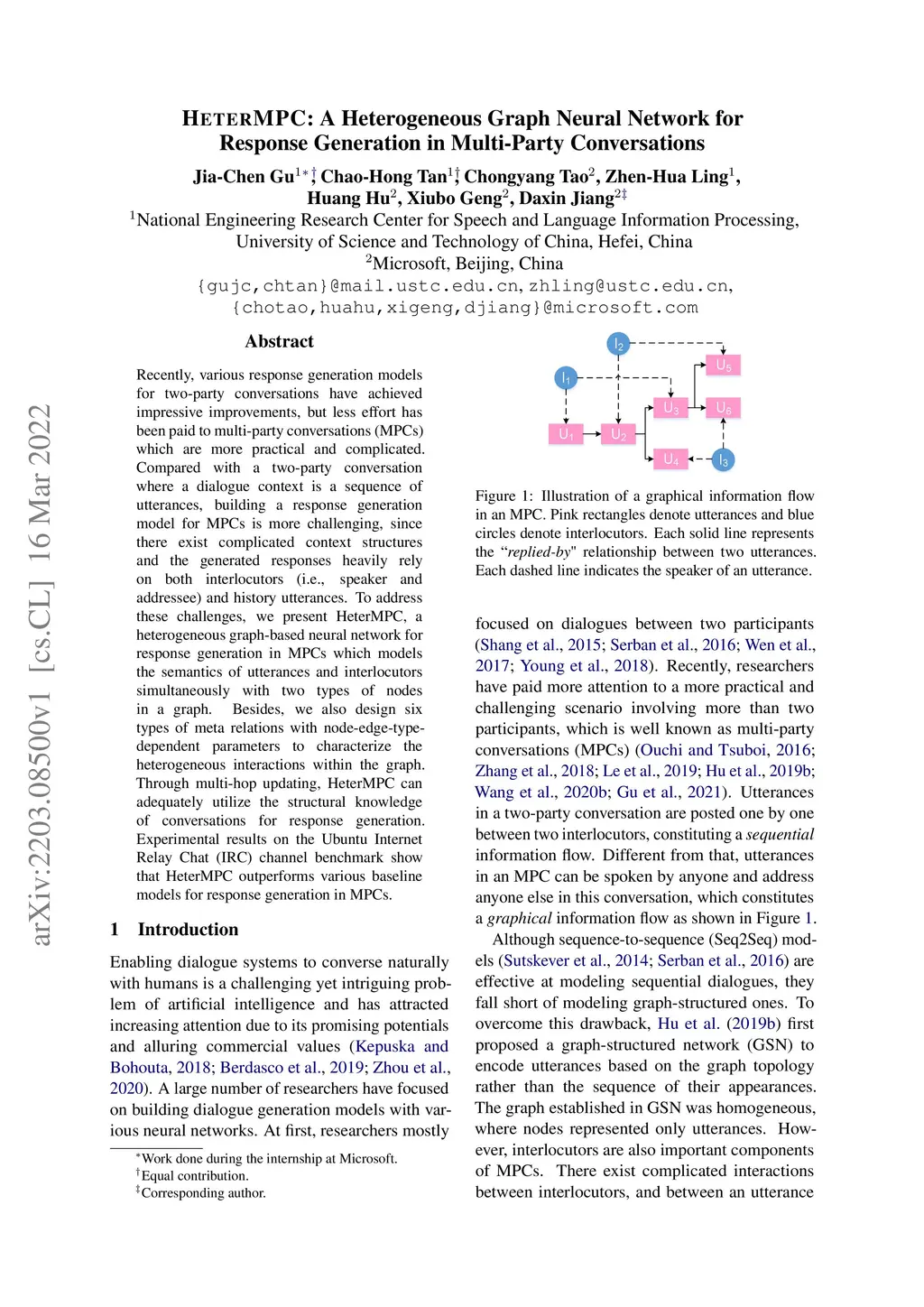 HeterMPC: A Heterogeneous Graph Neural Network for Response Generation