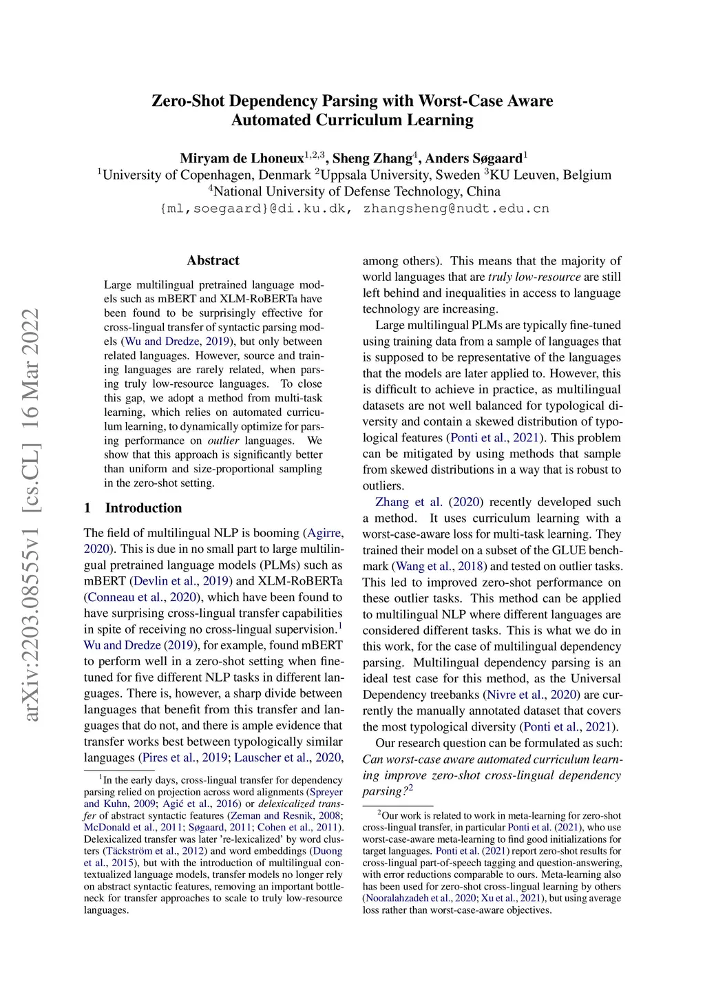 Zero-Shot Dependency Parsing with Worst-Case Aware Automated Curriculum